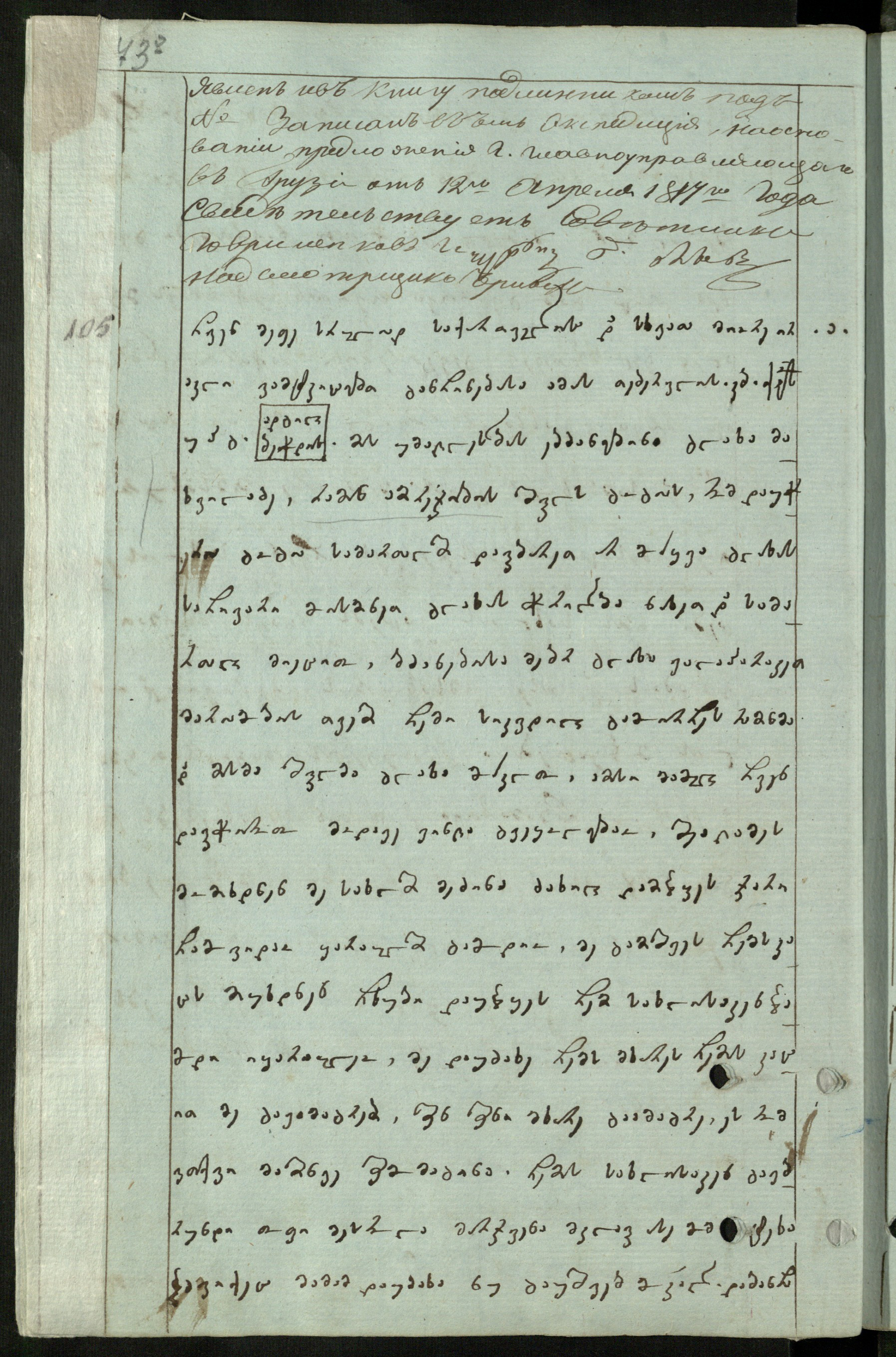 რეგისტრირებულია რუსეთის ადმინისტრაციის მიერ 1824 წ. 31 ოქტომბერს, სოვეტნიკები: დიმიტრი თარხანოვი, შერმაზან აფხაზოვი.