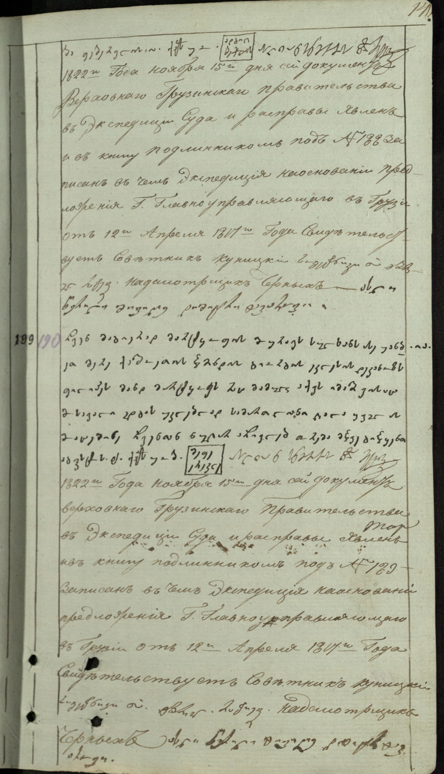 რეგისტრირებულია რუსეთის ადმინისტრაციის მიერ, სოვეტნიკი, 1822 წ. 15 ნოემბერს, =189, სოვეტნიკი გ. რატიევი