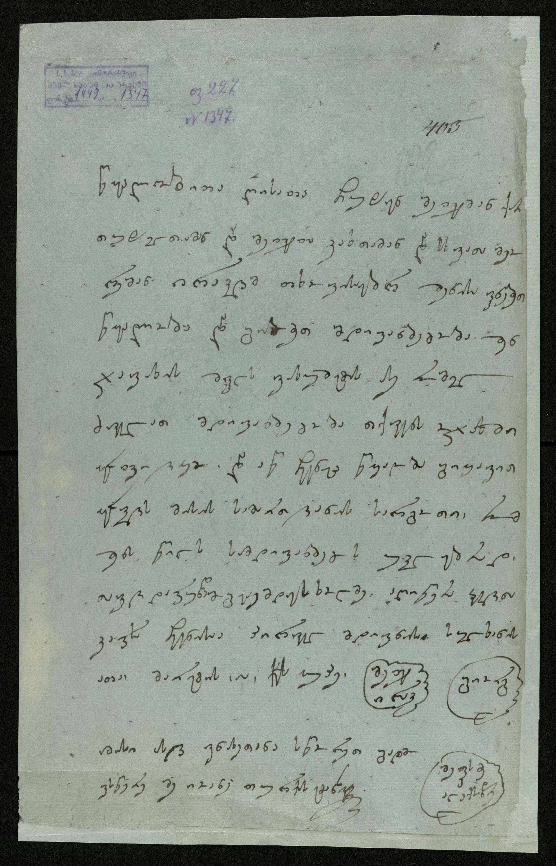 ცისფერი ქაღალდი ჭვირნიშნით, დაწერილი შავი მელნით