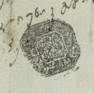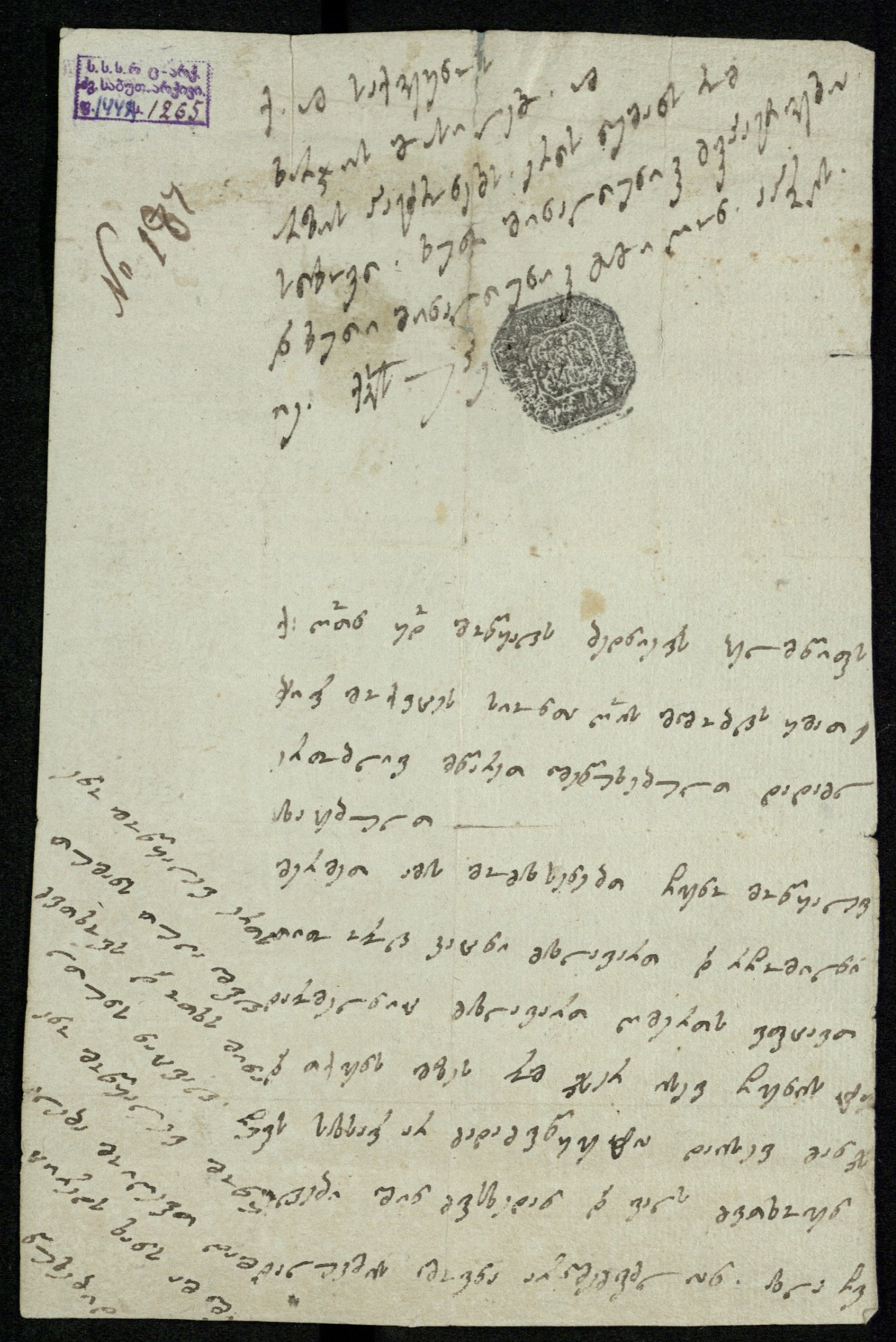 ჭვირნიშნიანი ქაღალდი ნაცრისფერი, შესრულებული შავი მელნით