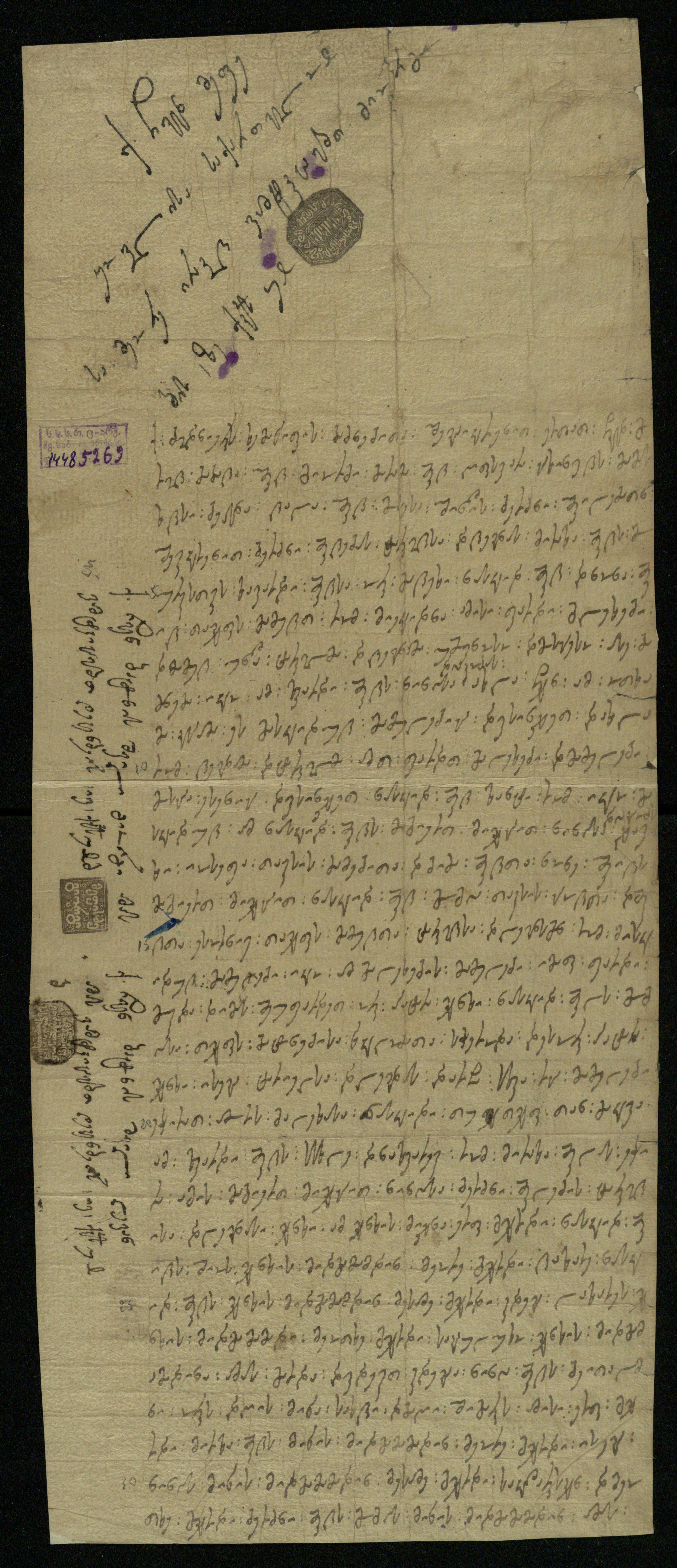 მოყვითალო ქაღალდი, დაწერილი ყავისფერი და შავი მელნით