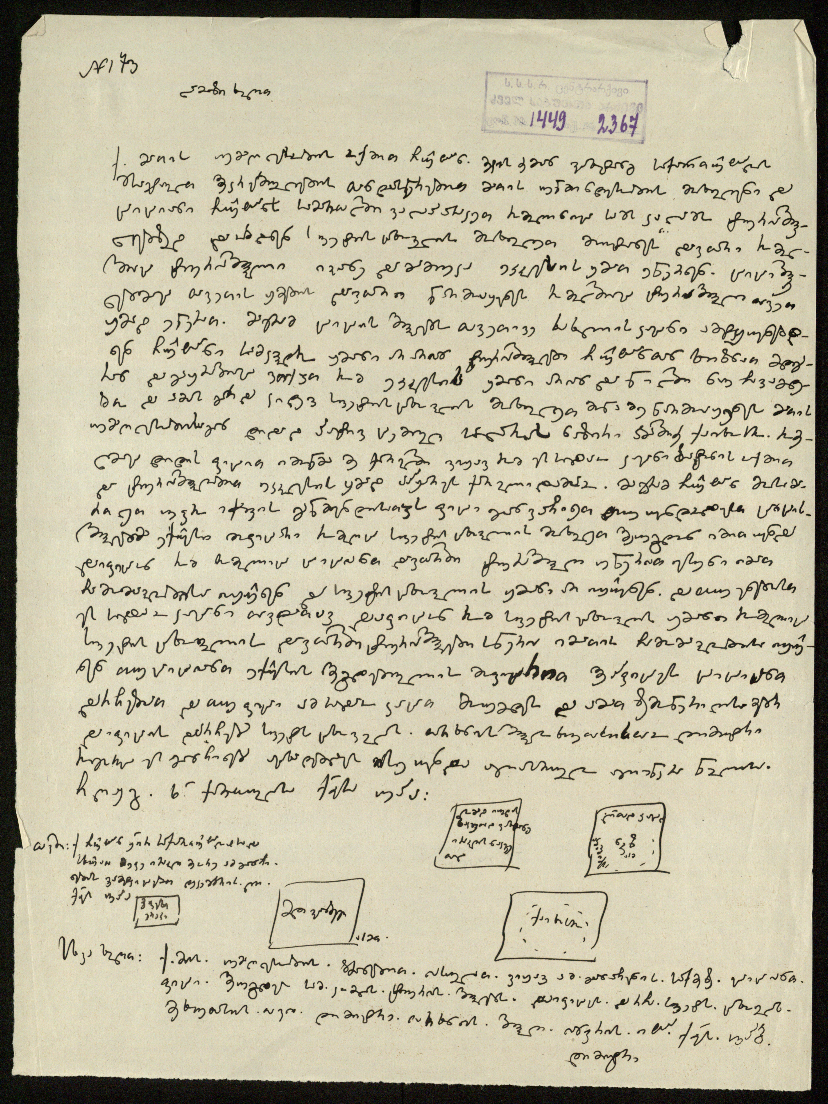 1. დოკუმენტი გადაწერილი სარგის კაკაბაძის მიერ XX-ის დასაწყისში.