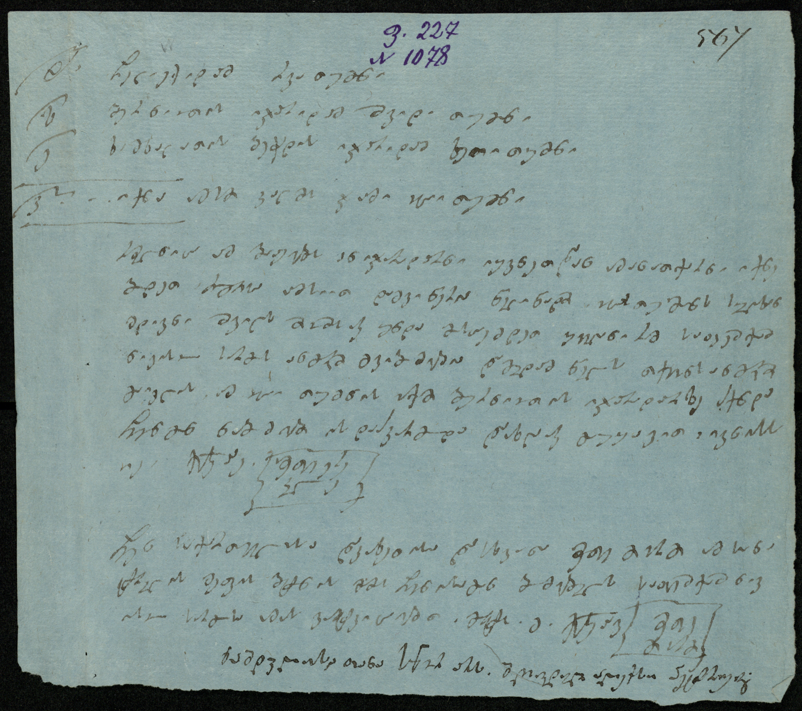 ცისფერი ქაღალდი, დაწერილი შავი მელნით