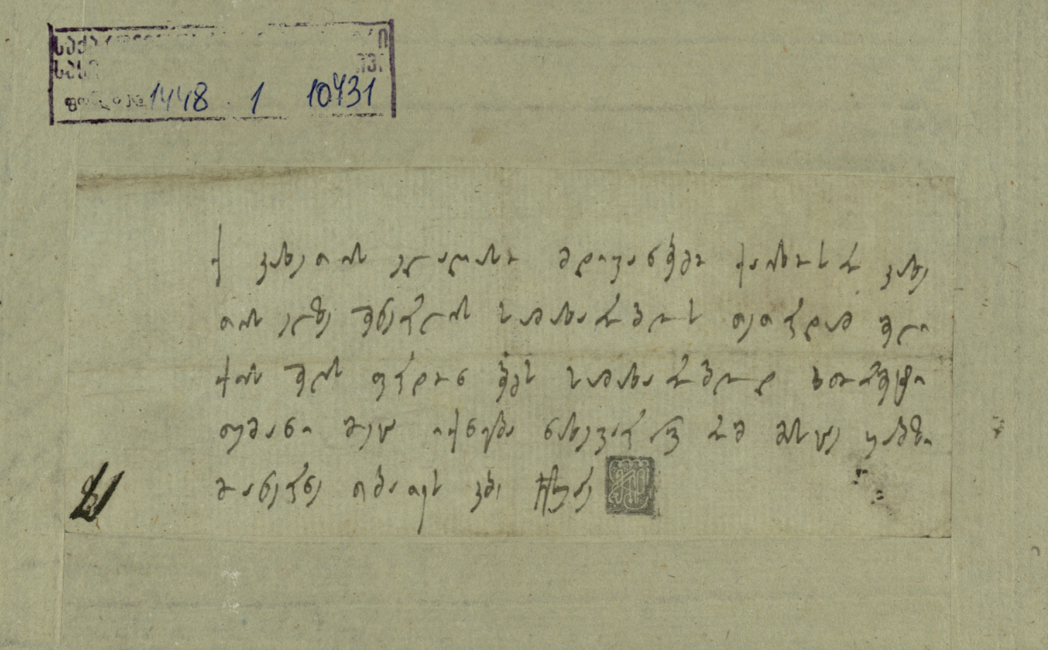 ჭვირნიშნიანი მწვანე ქაღალდი, დაწერილი ყავისფერი მელნით.