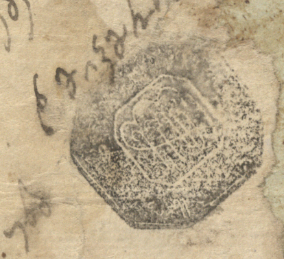 ქაღალდი ყვითელი ყავისფერი ლაქებით, დაწერილი ყავისფერი მელნით
