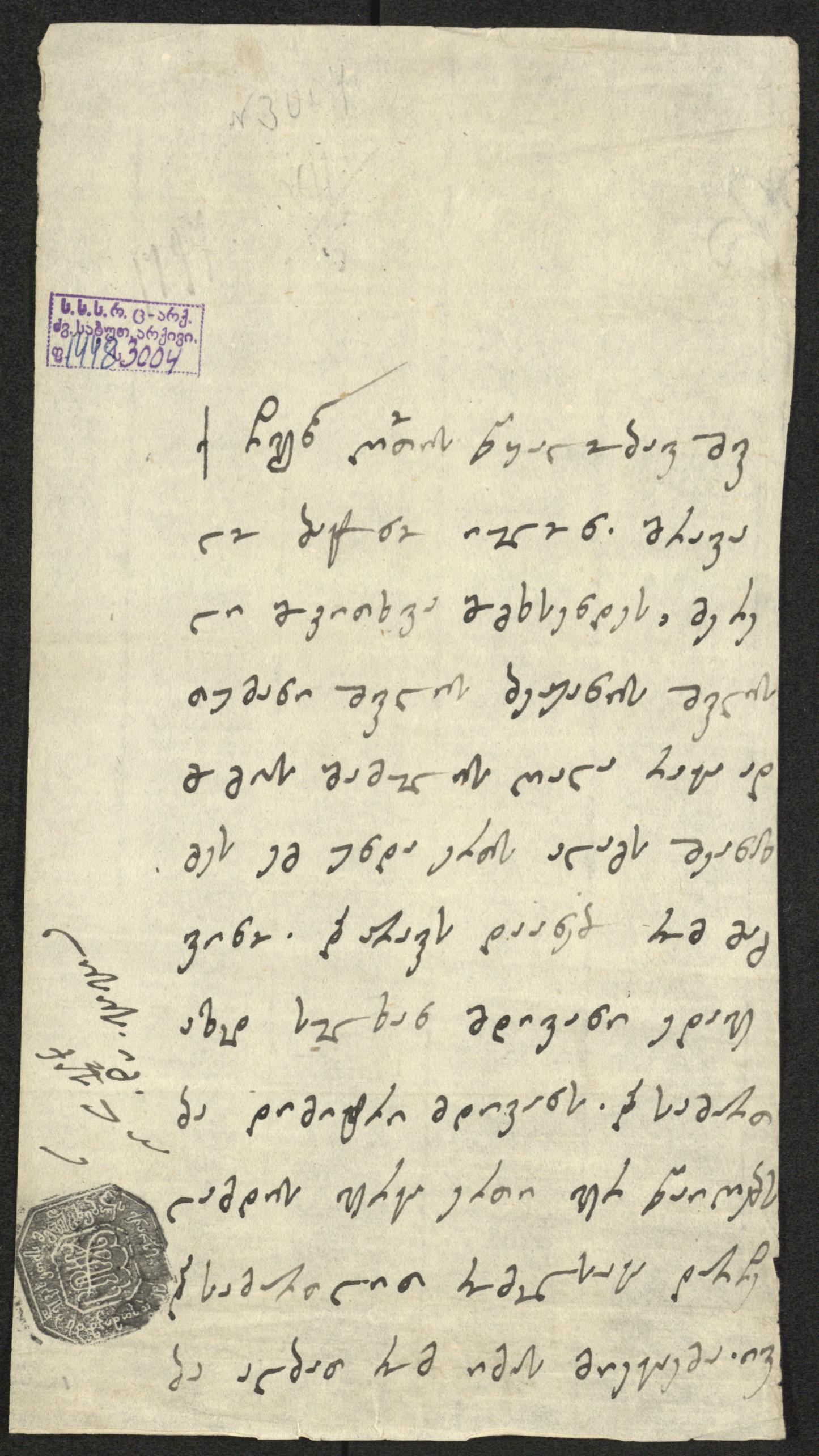 ჭვირნიშნიანი თეთრი ქაღალდი, შესრულებული შავი მელნით