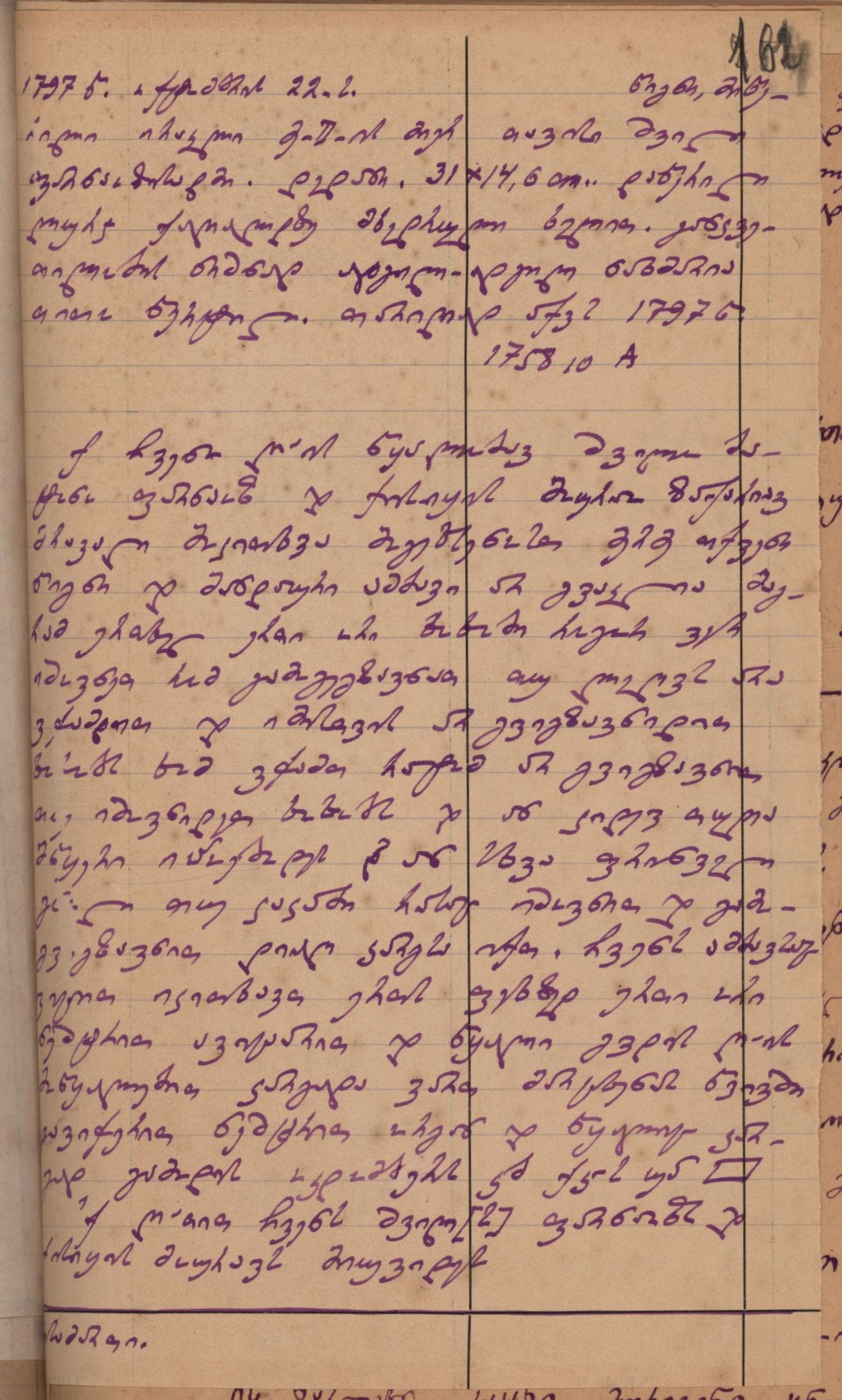 3. დედნის აღწერა გიორგი ბოჭორიძის მიერ: დედანი, 31x14,6 cm, დაწერილი ლურჯ ქაღალდზე მხედრული ხელით; განკვეთილობის ნიშნად ადგილ-ადგილ ნახმარია თითო წერტილი", დედანი, ხეც, 1758/10A.