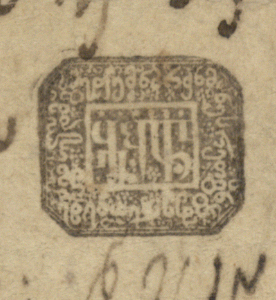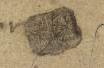 2. გვიანდელი მინაწერი: ტექსტის ბოლოს ერთი სტრიქონი შესრულებულია შავი მელნით, გაურკვეველი ხელით.