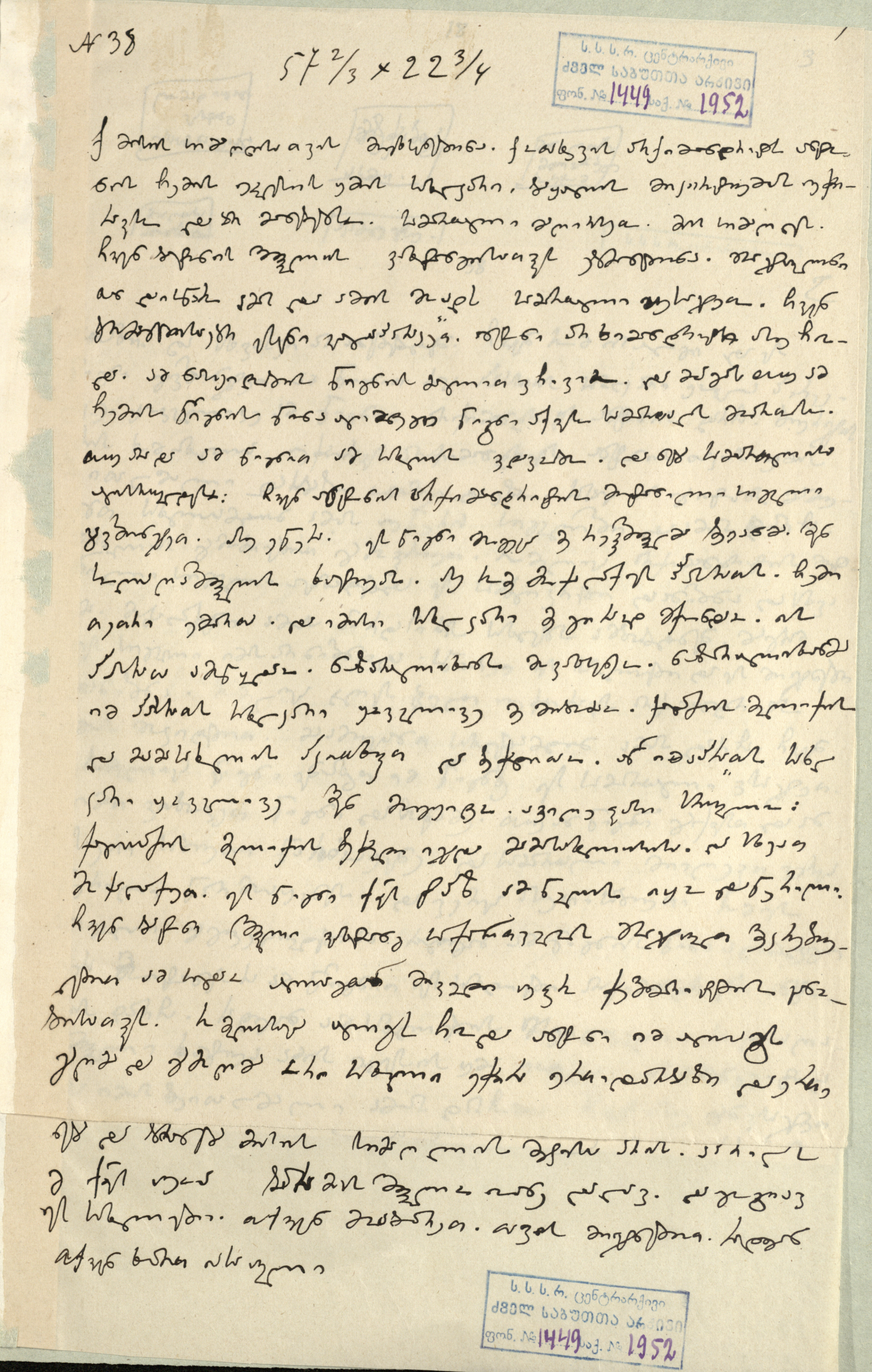 2. სარგის კაკაბაძეს მითითებული აქვს დოკუმენტის დედნის ძველი საარქივო ნომერი - N38 და ზომა 57-2/3 X 22-3/4.