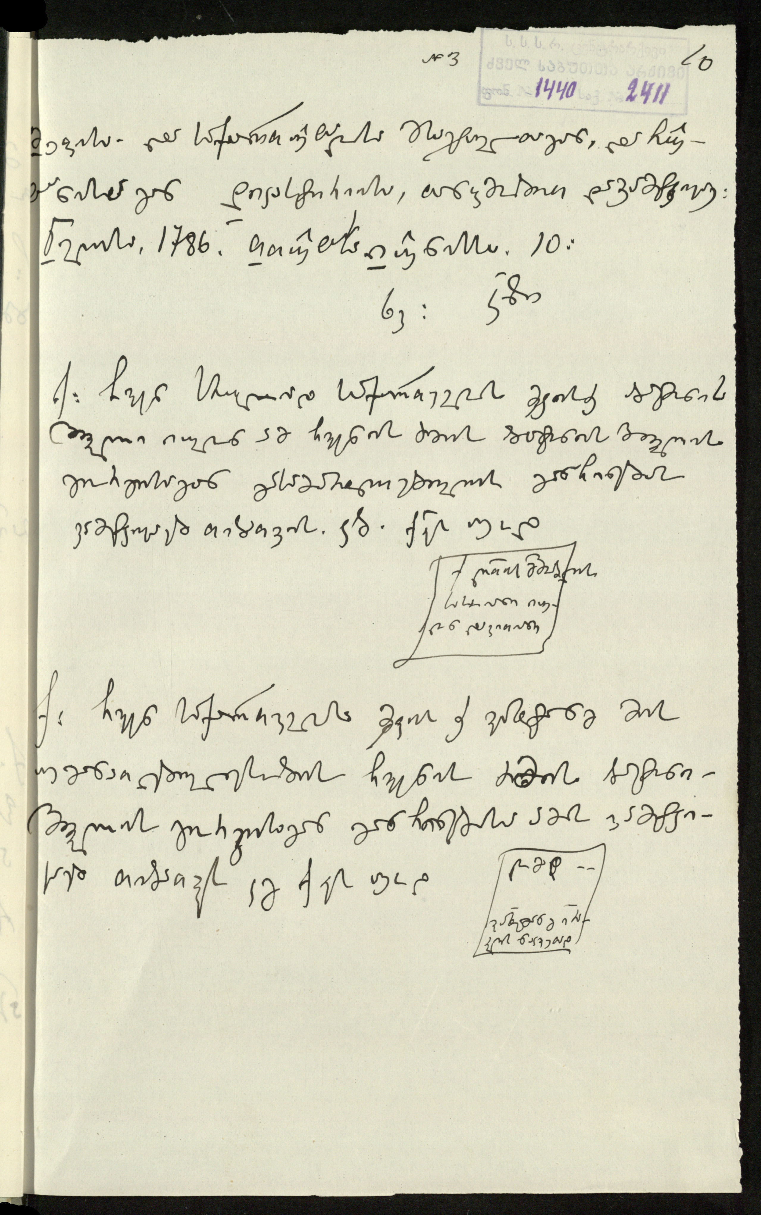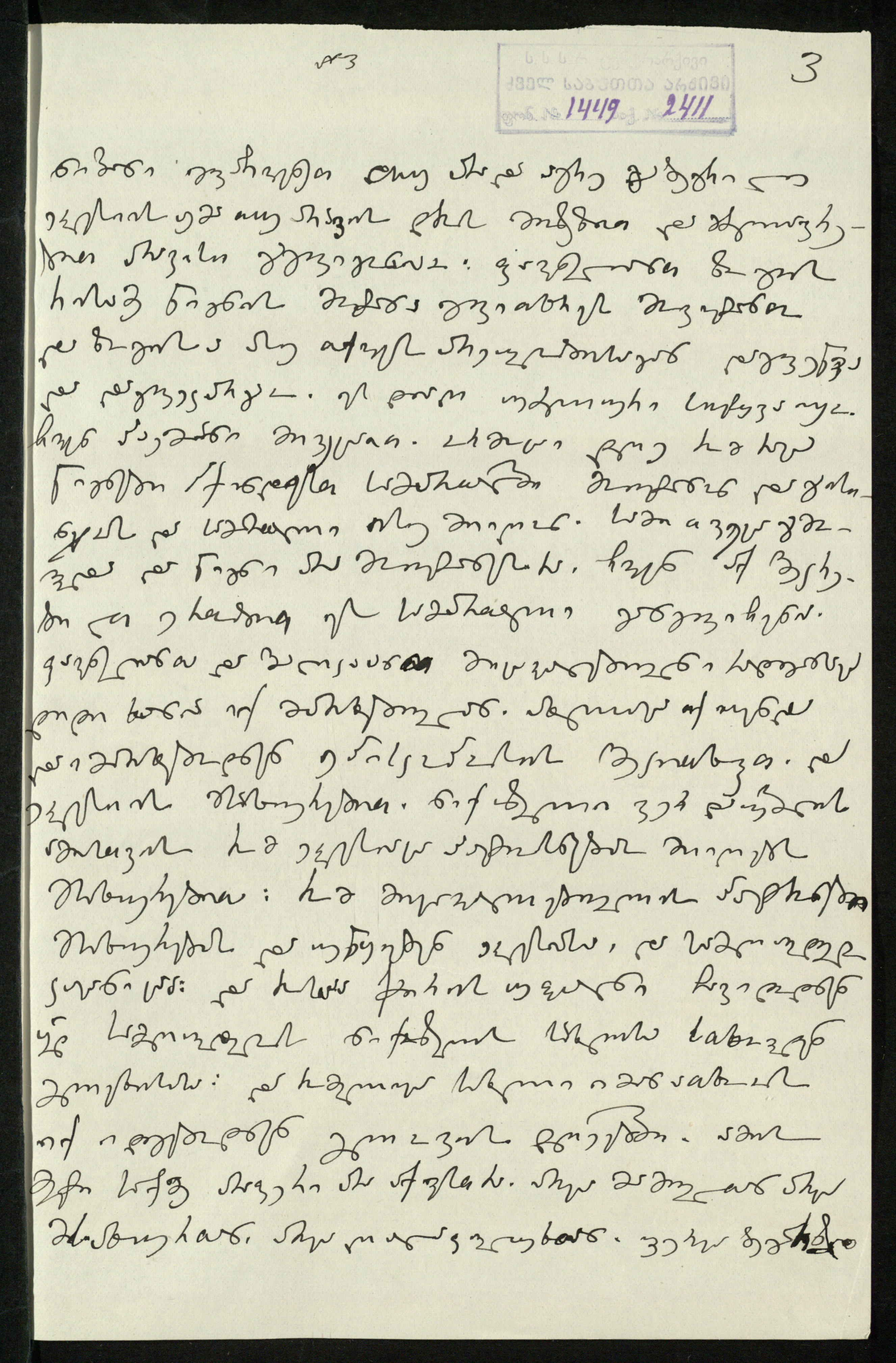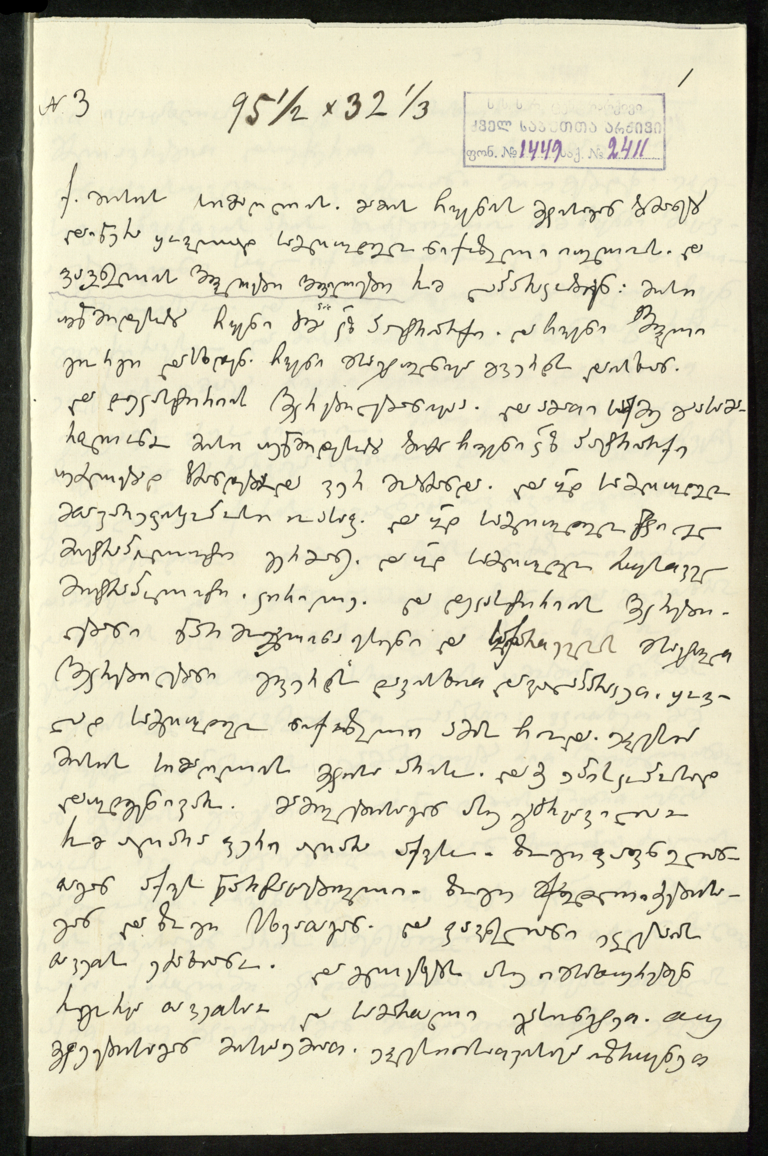 3. სარგის კაკაბაძეს მითითებული აქვს დედნის ზომა 95,½X32,⅓ და ძველი საარქივო-სააღრიცხვო ნომერი:3“.