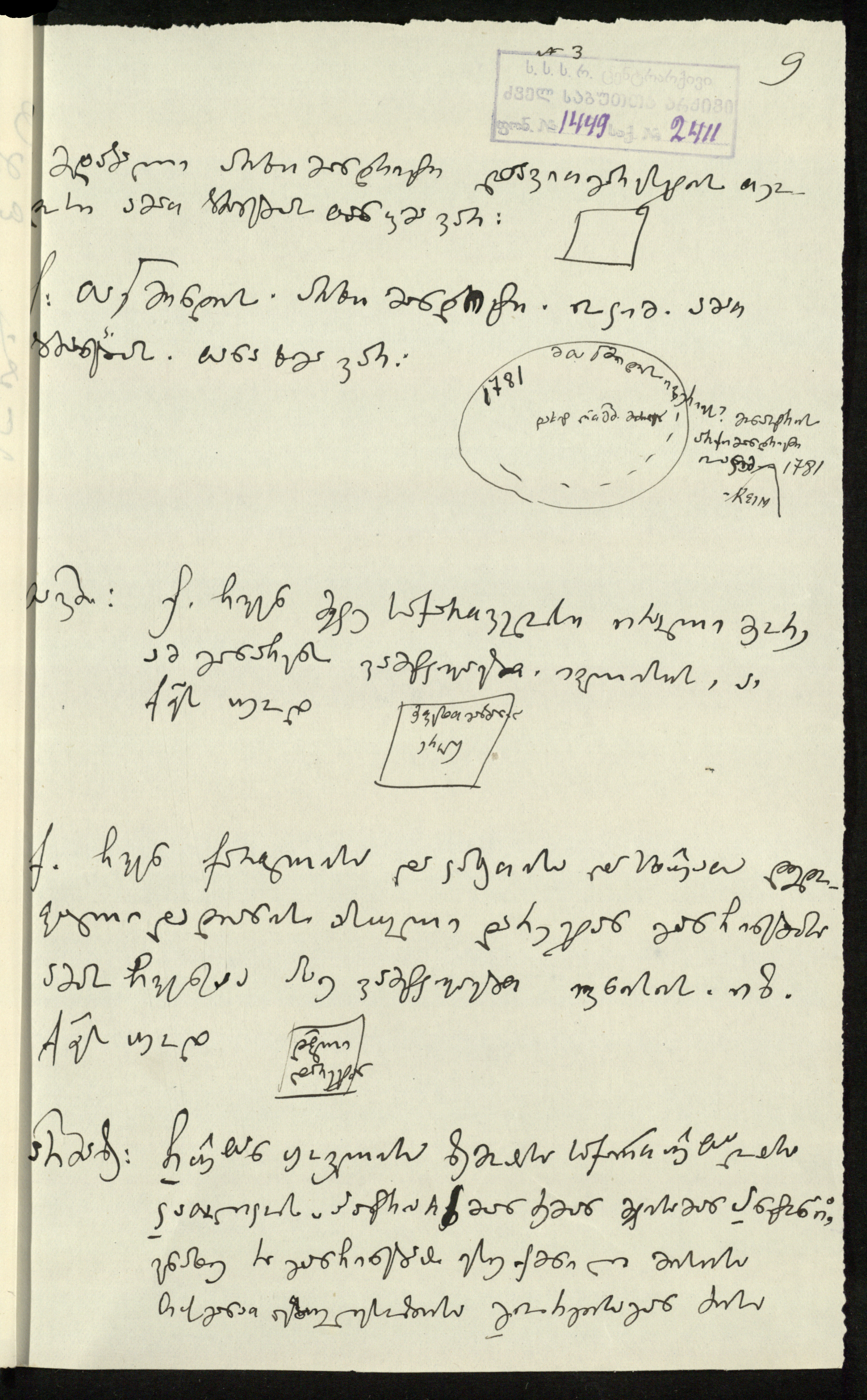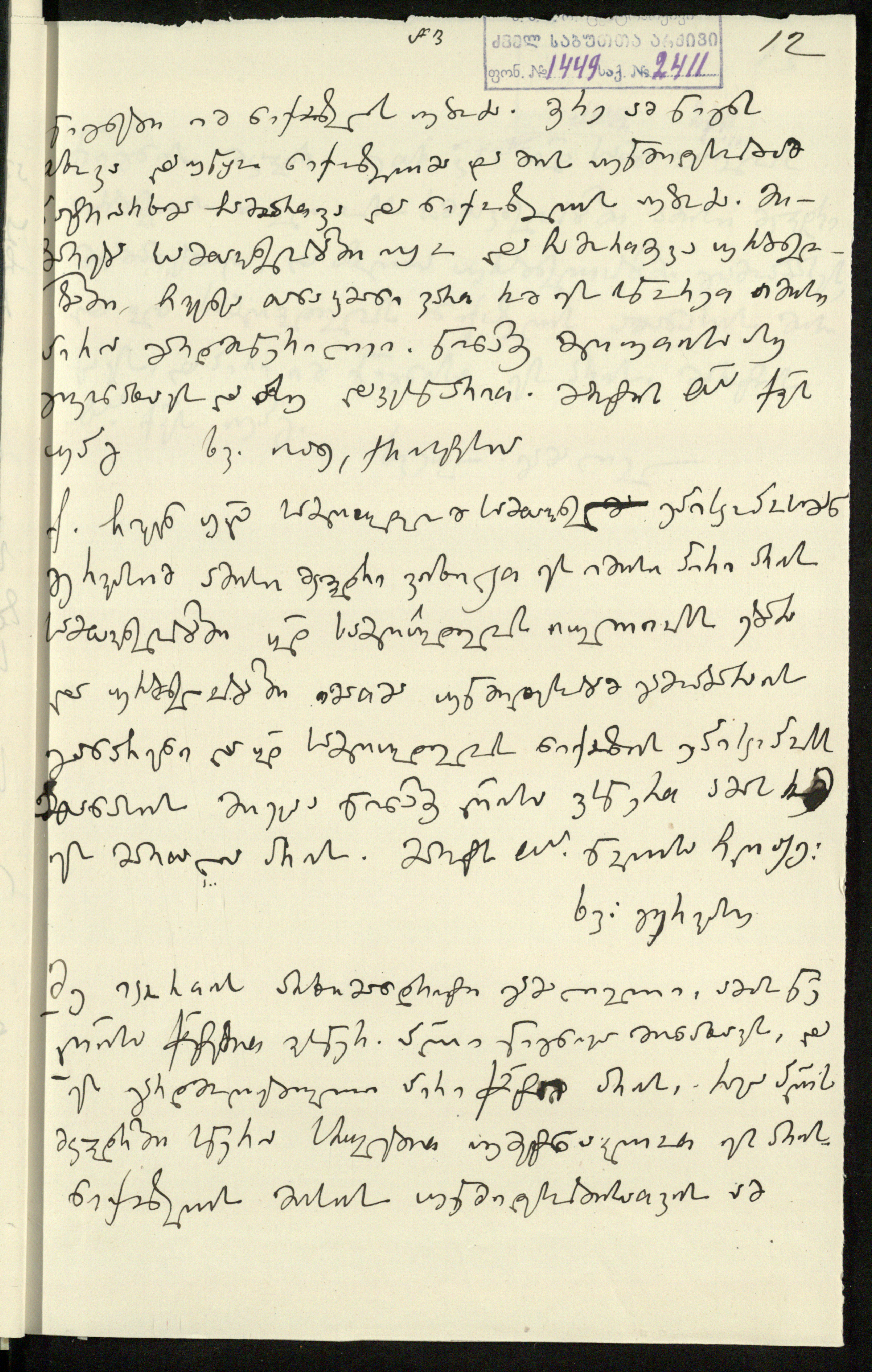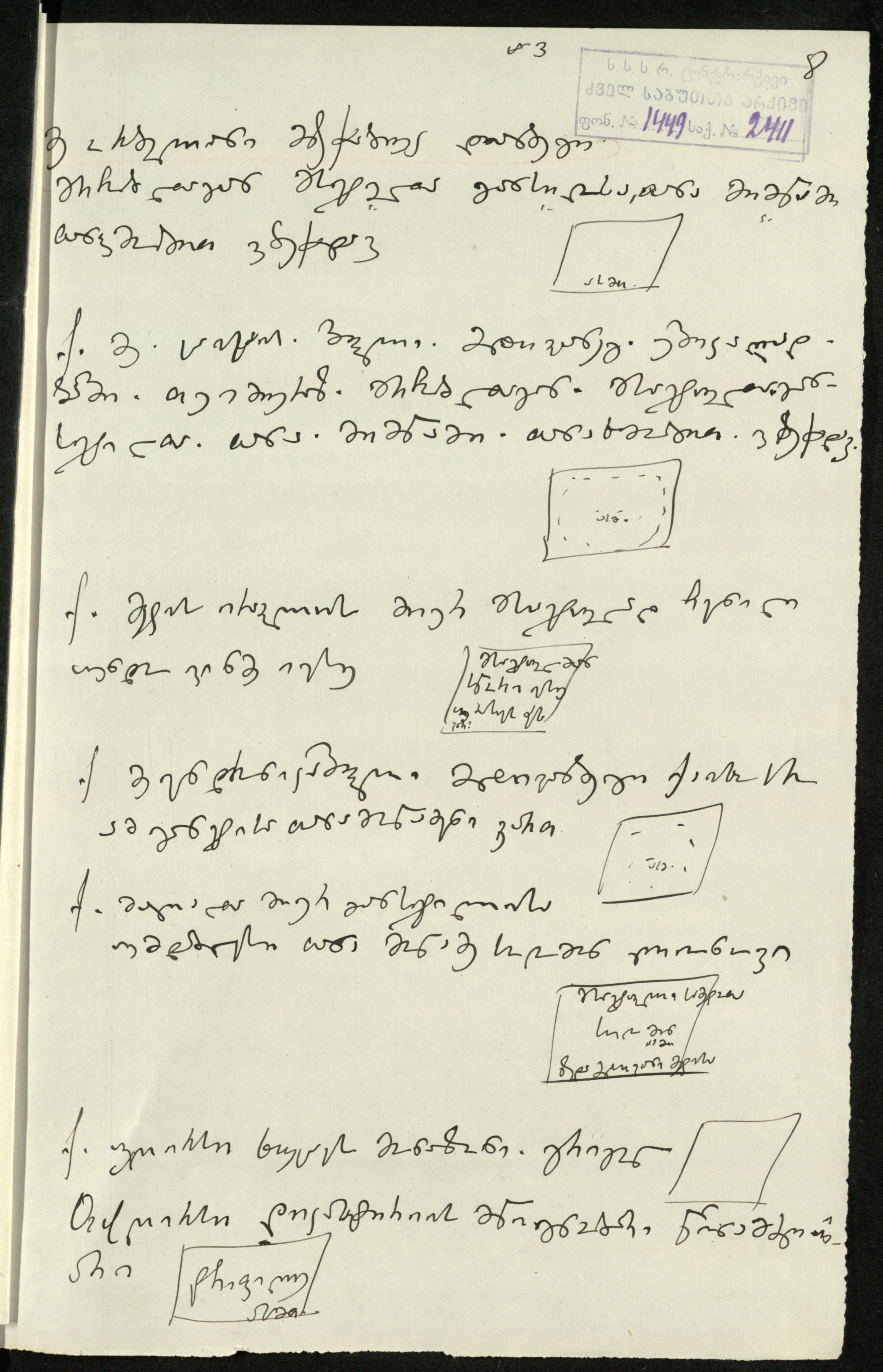 3. სარგის კაკაბაძეს მითითებული აქვს დედნის ზომა 95,½X32,⅓ და ძველი საარქივო-სააღრიცხვო ნომერი:3“.