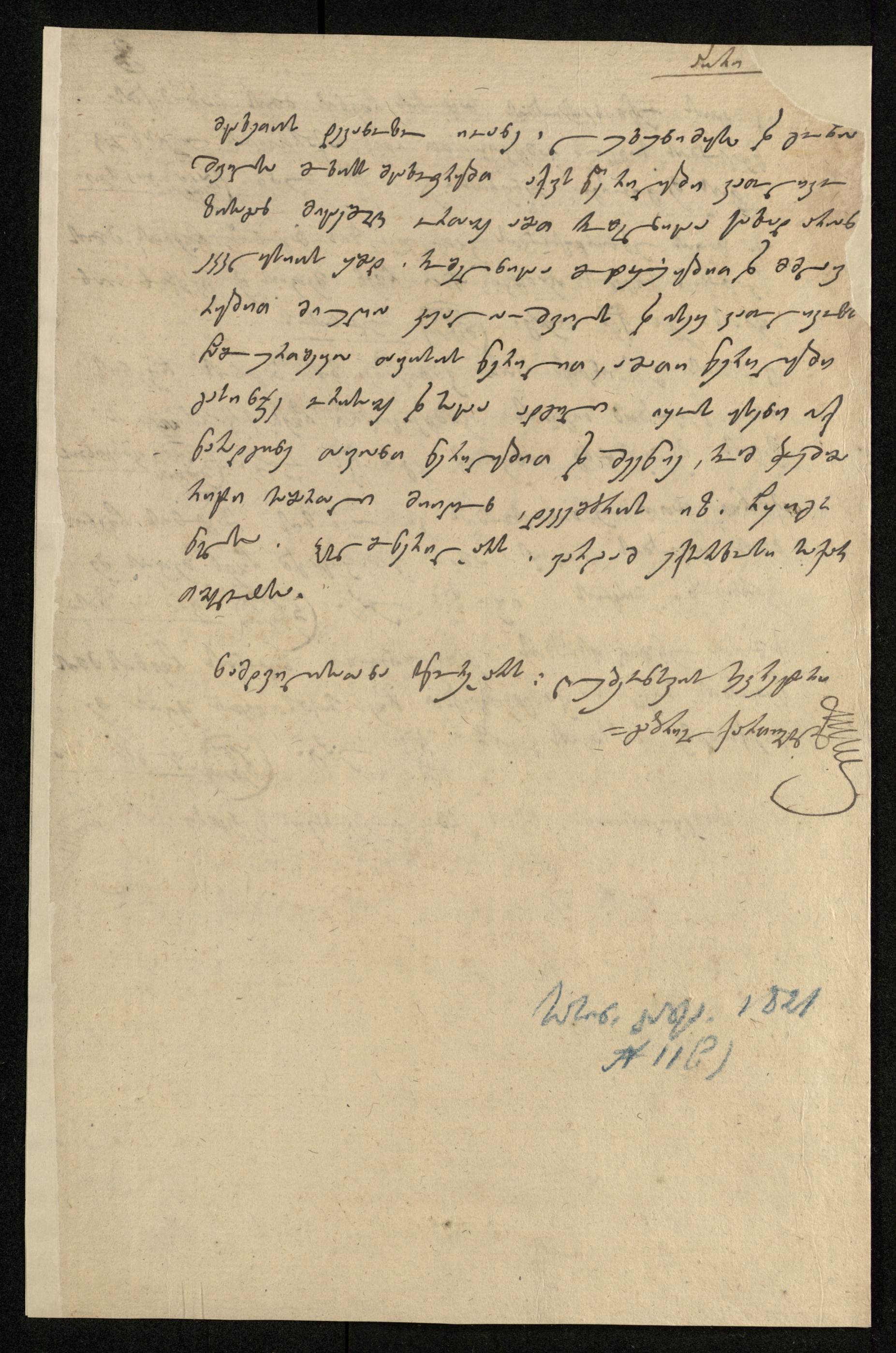ქაღალდი მოყვითალო, დაწერილი ყავისფერი მელნით