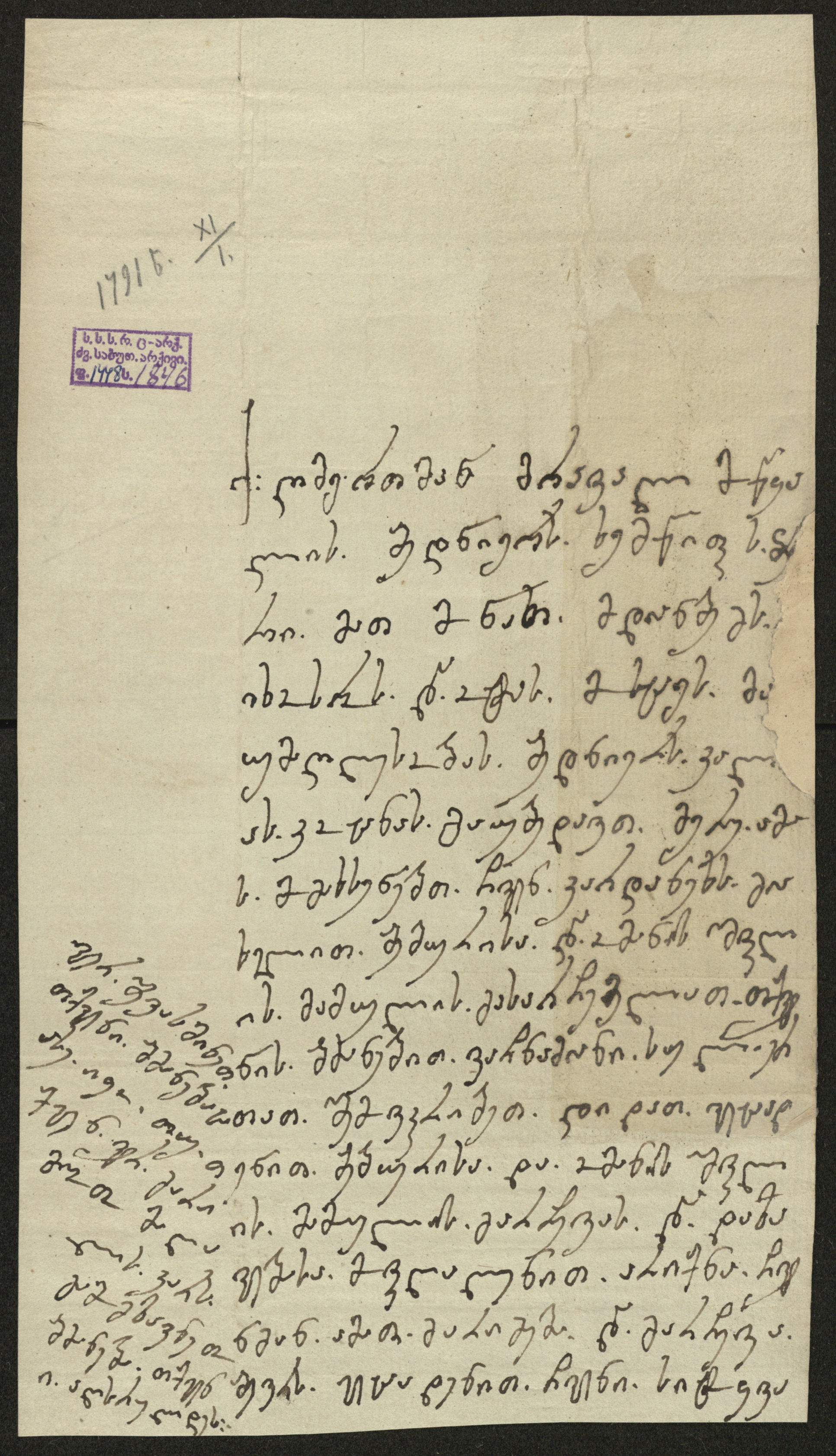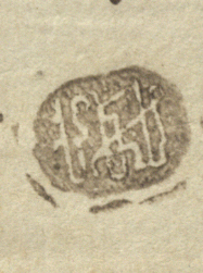 ჭვირნიშნიანი ქაღალდი ნაცრისფერი, დაწერილი შავი მელნით