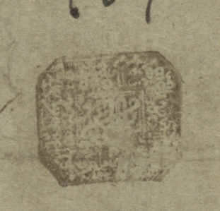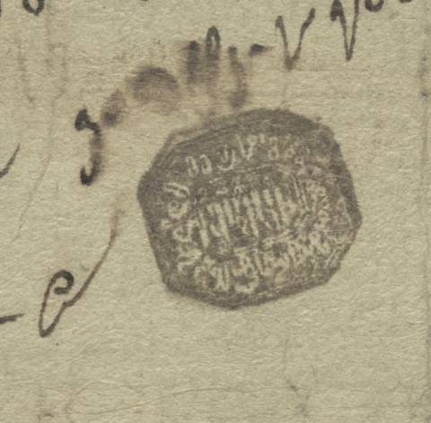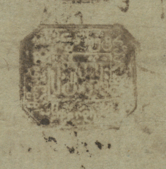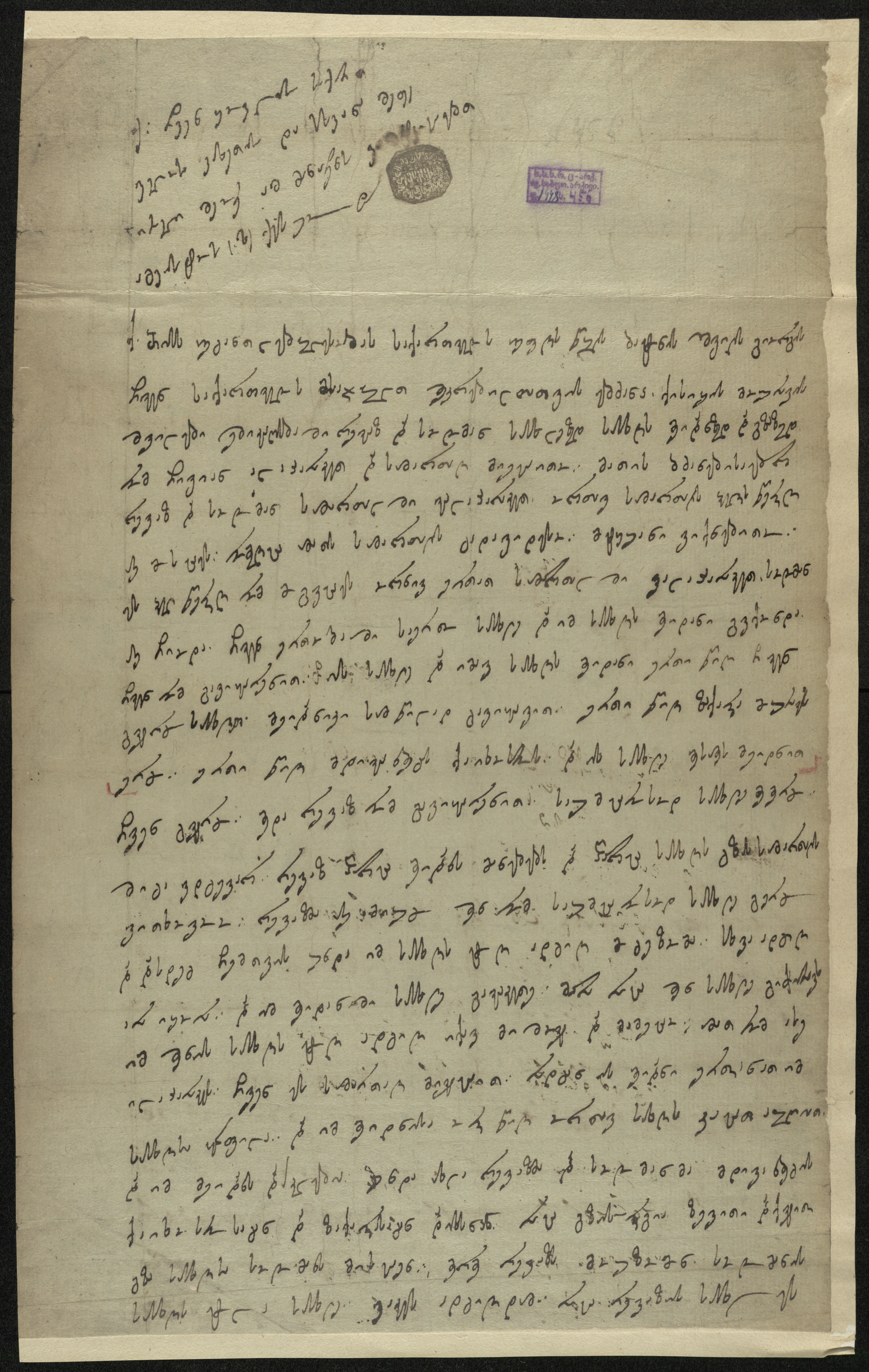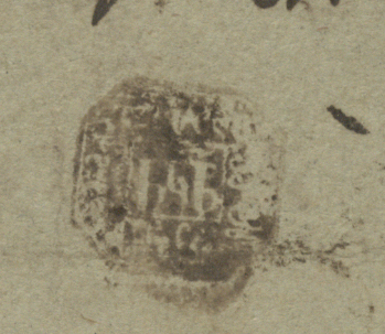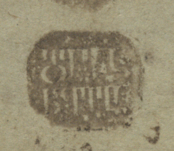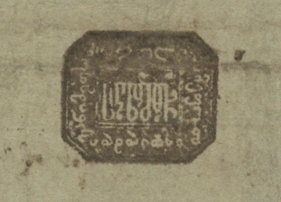 ჭვირნიშნიანი (დათვი ცულით) ქაღალდი ნაცრისფერი, დაწერილი შავი მელნით.
