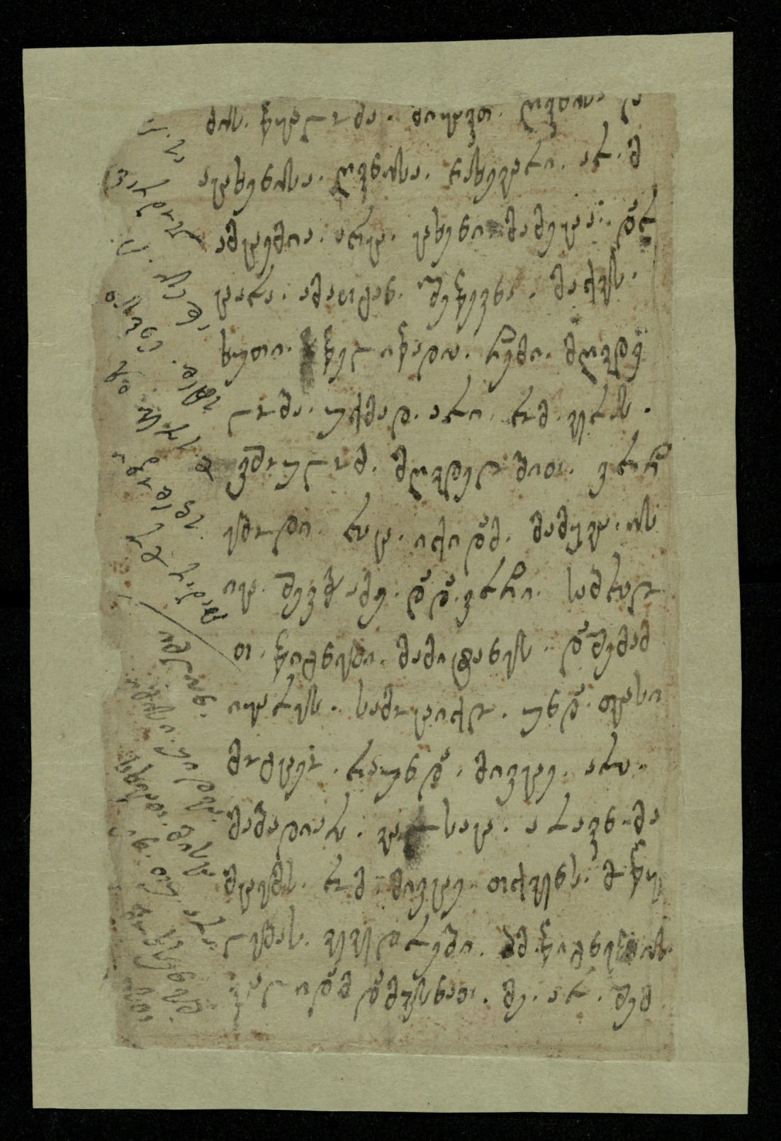 ქაღალდი ნაცრისფერი მოყვითალო ლაქებით, დაწერილი შავი მელნით