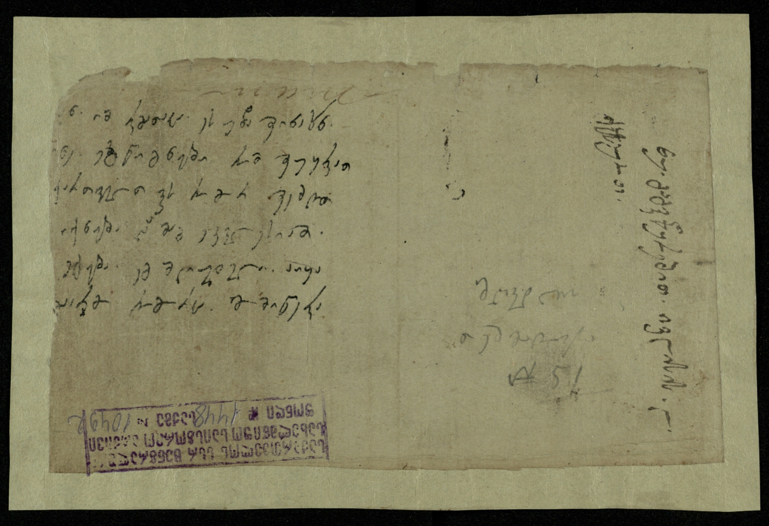 გვიანდელი მინაწერი შავი ფანქრით: ,,მღვდლის თუშმალოვისა, N51“