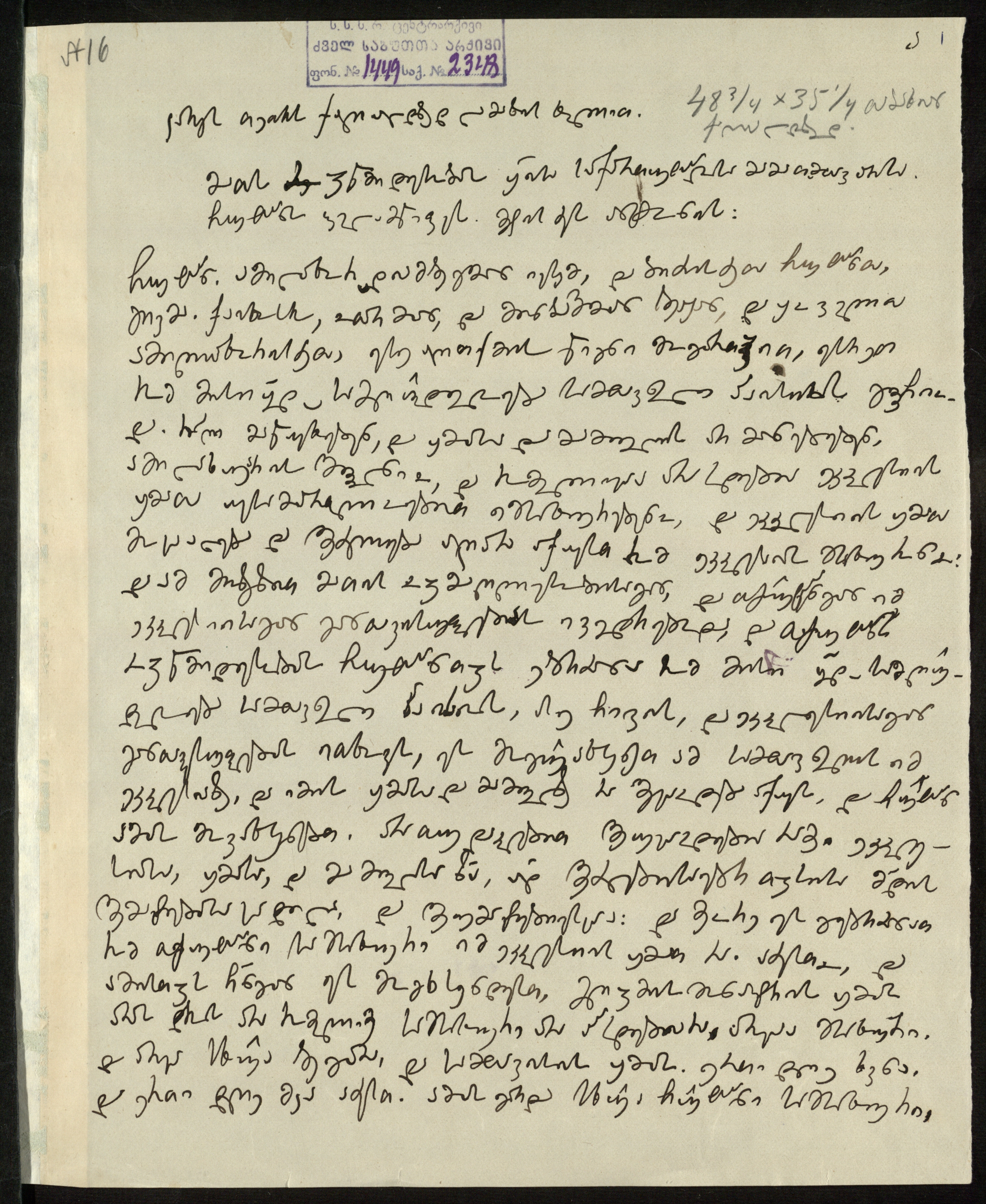 ქაღალდი თეთრი, დაწერილი შავი მელნით.
