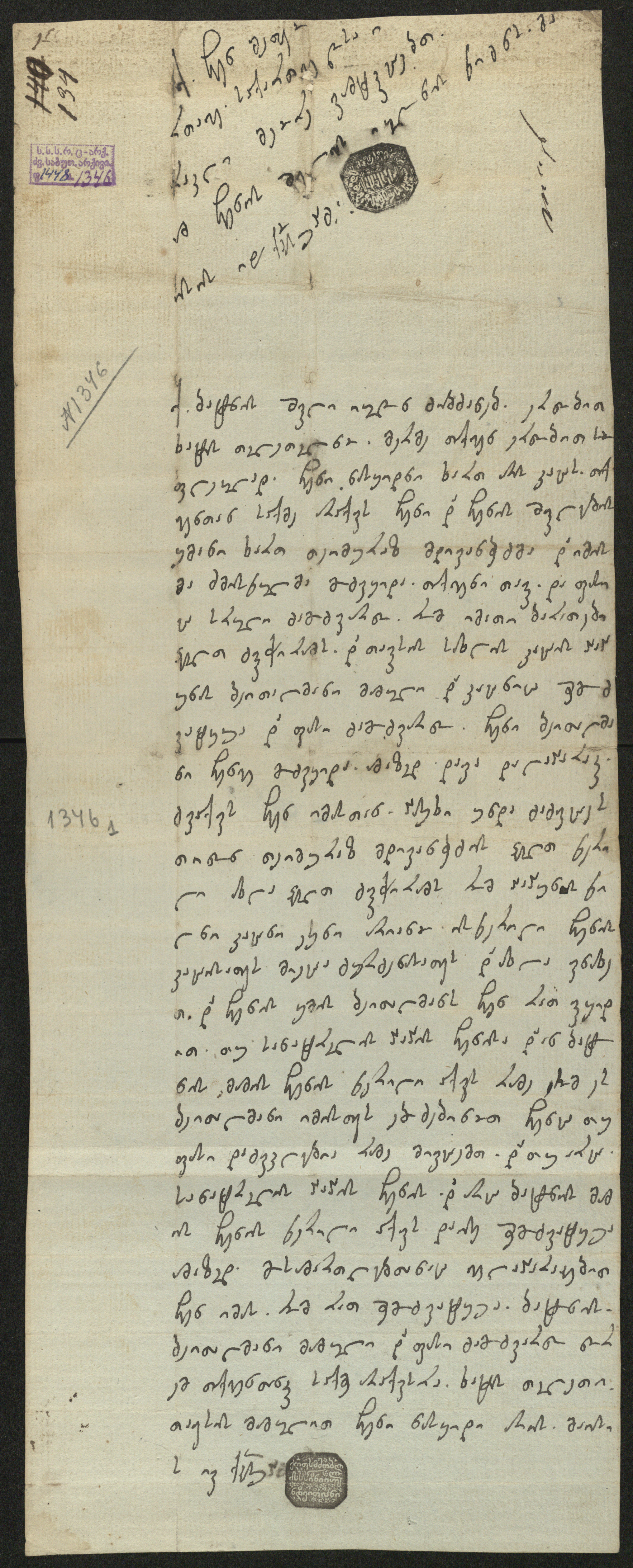 ქაღალდი ნაცრისფერი, შესრულებული შავი მელნით.
