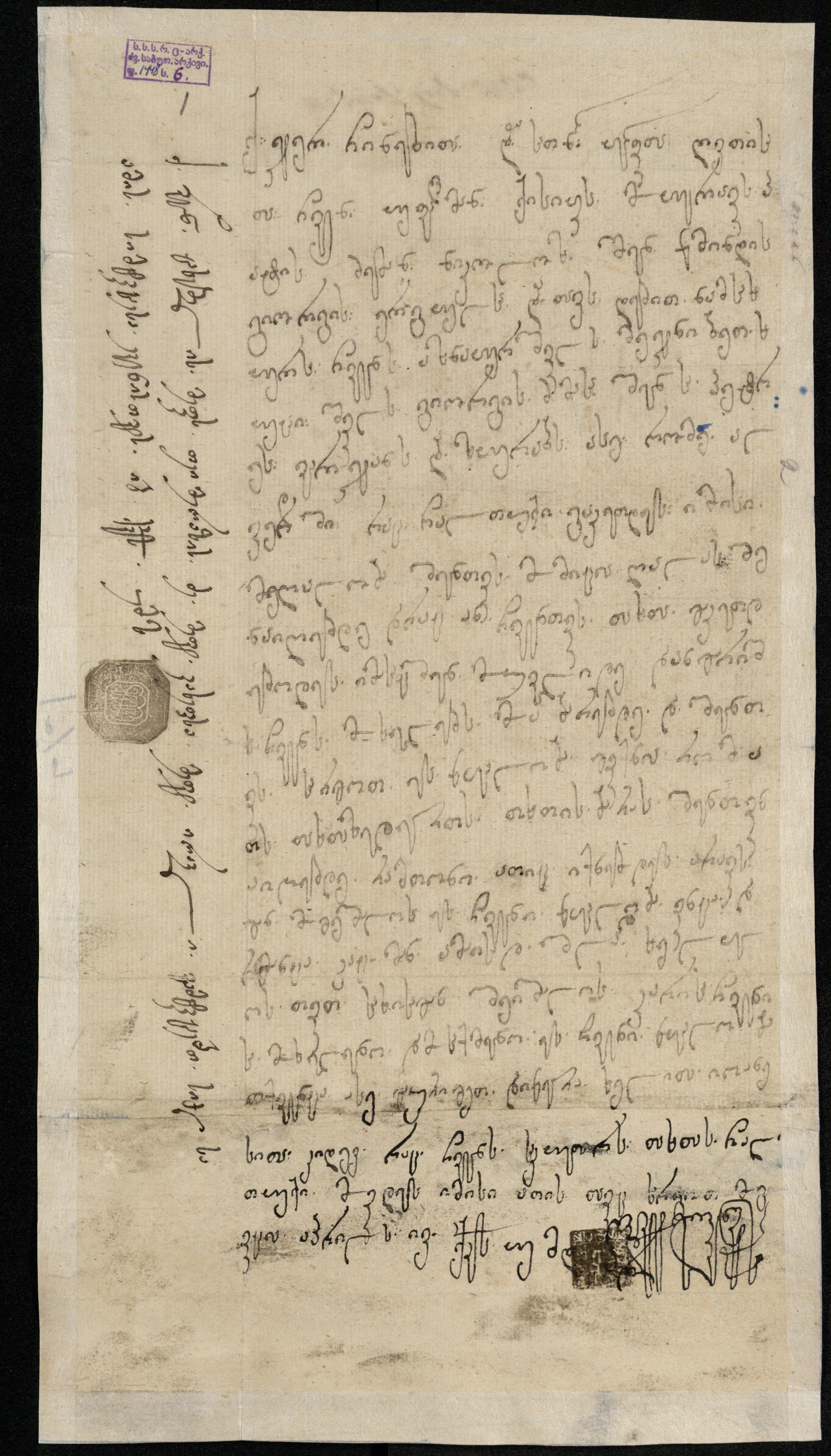 ქაღალდი ნაცრისფერი, დაწერილი შავი მელნით.