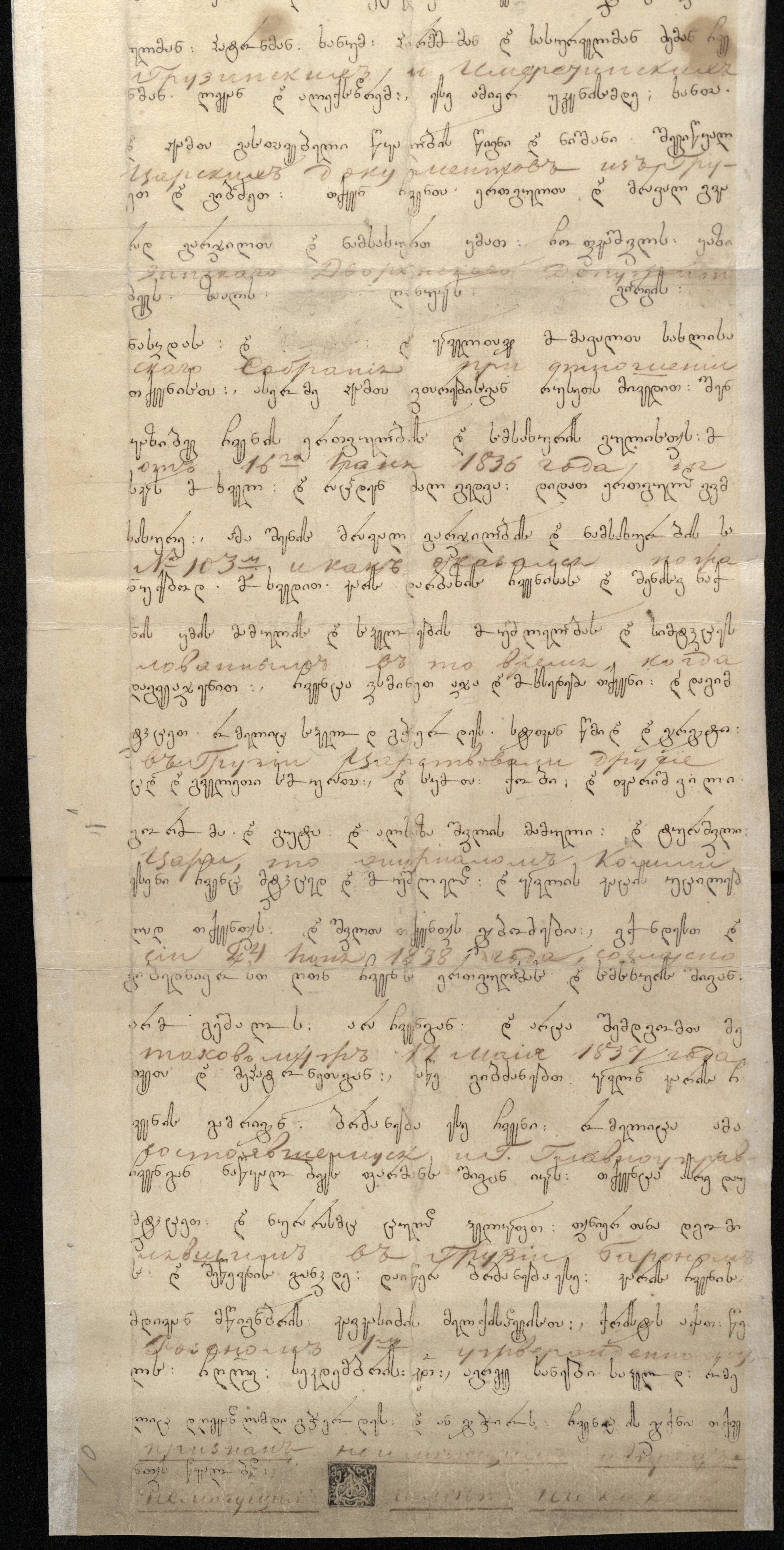 ქაღალდი ღია ნაცრისფერი, დაწერილი შავი მელნით.