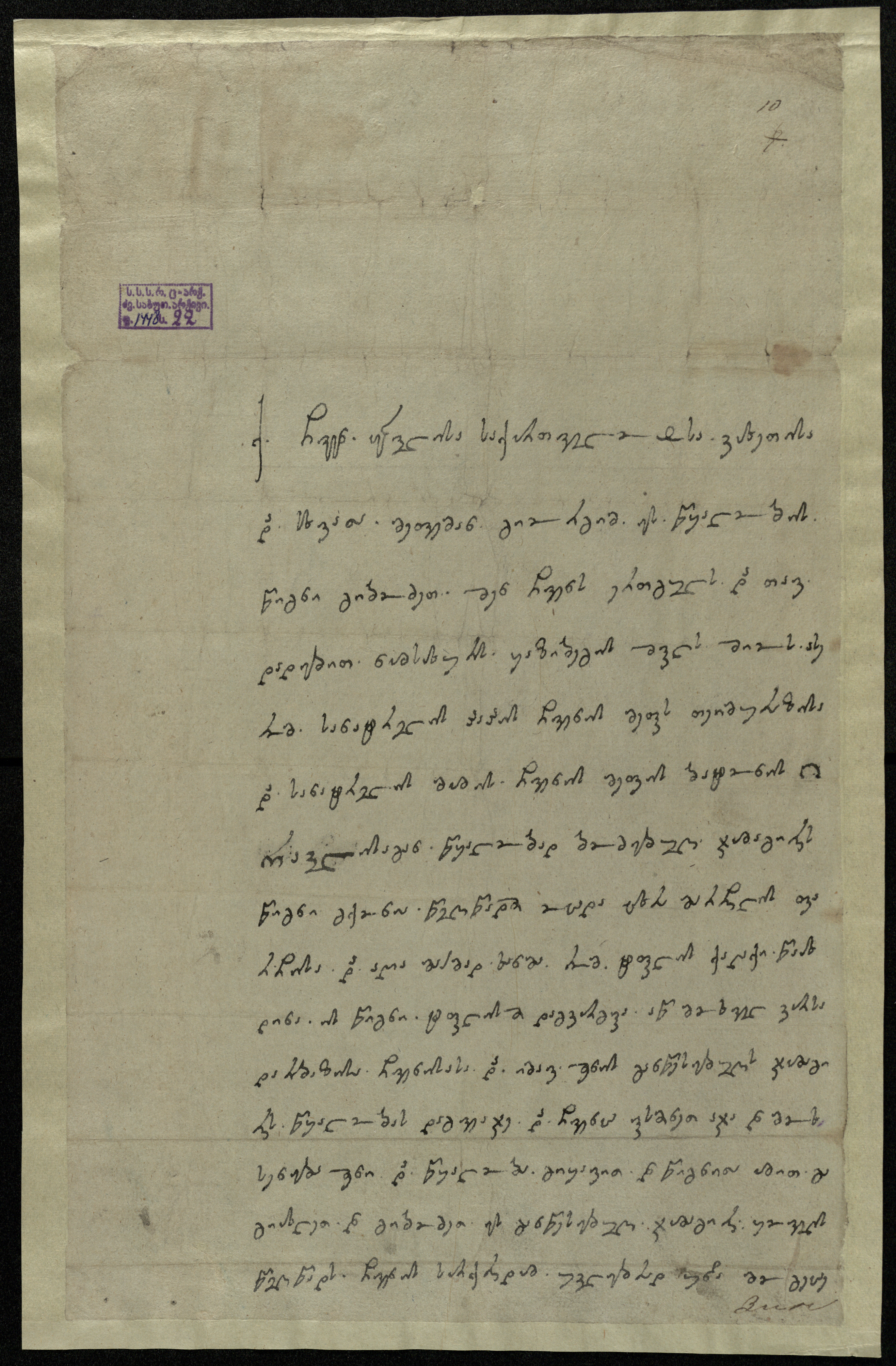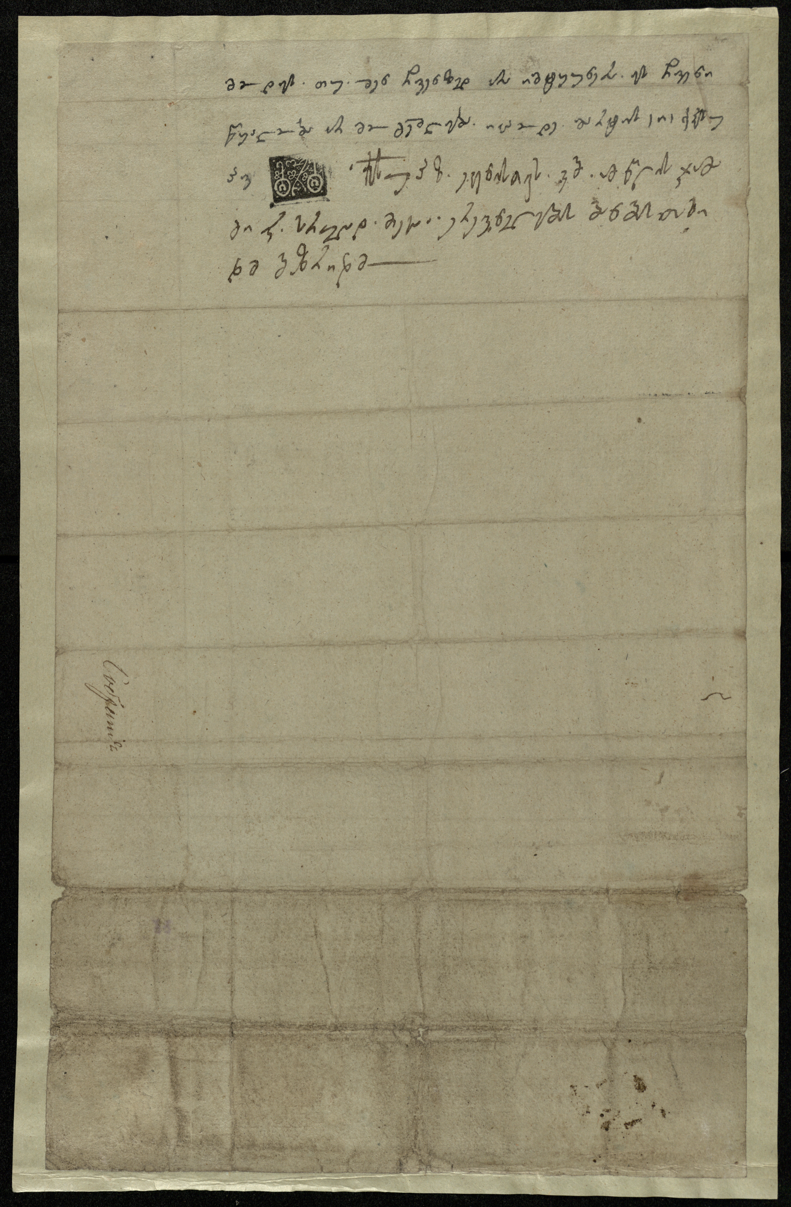 ქაღალდი მომწვანო, დაწერილი შავი მელნით.