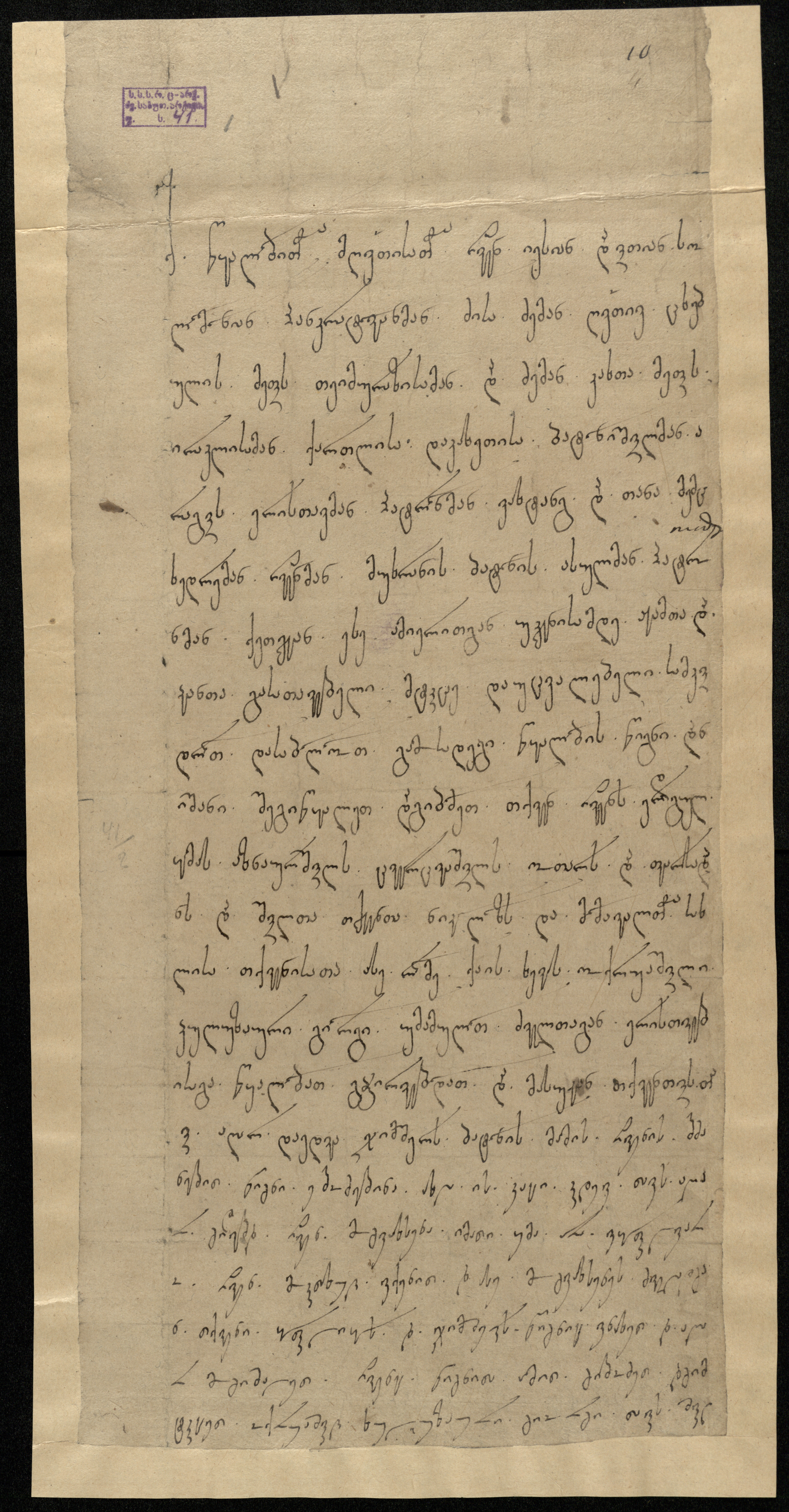 ქაღალდი ნაცრისფერი დაწერილი შავი მელნით.