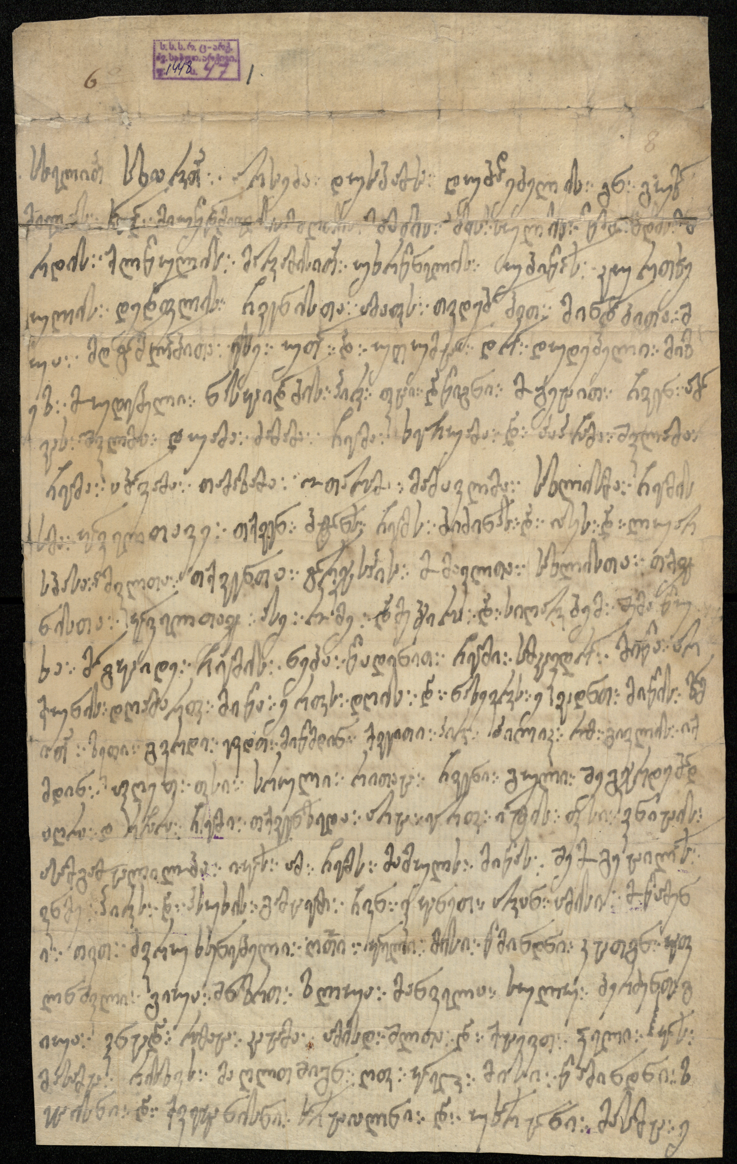 ქაღალდი მოყვითალო, დაწერილი ყავისფერი მელნით.