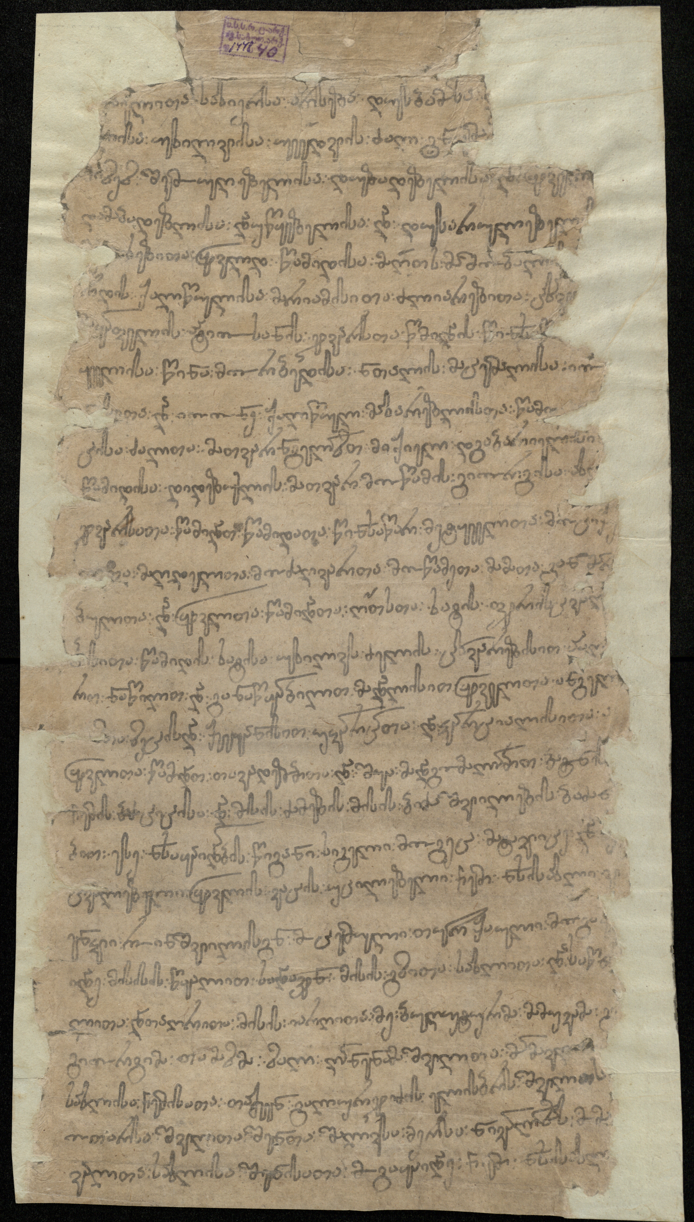 ქაღალდი ნაცრისფერი, დაწერილი შავი მელნით.