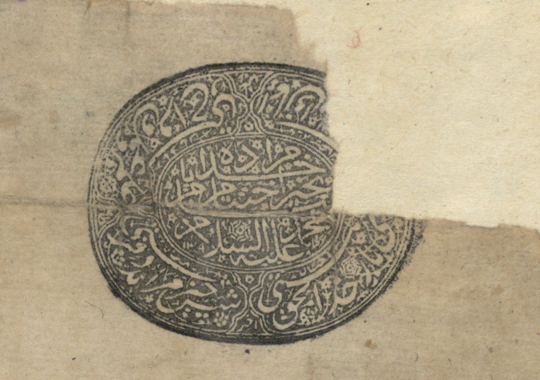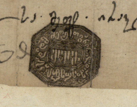 4. საბუთს თავში უზის დიდი ზომის მრგვალი ბეჭედი სპარსული ლეგენდით.