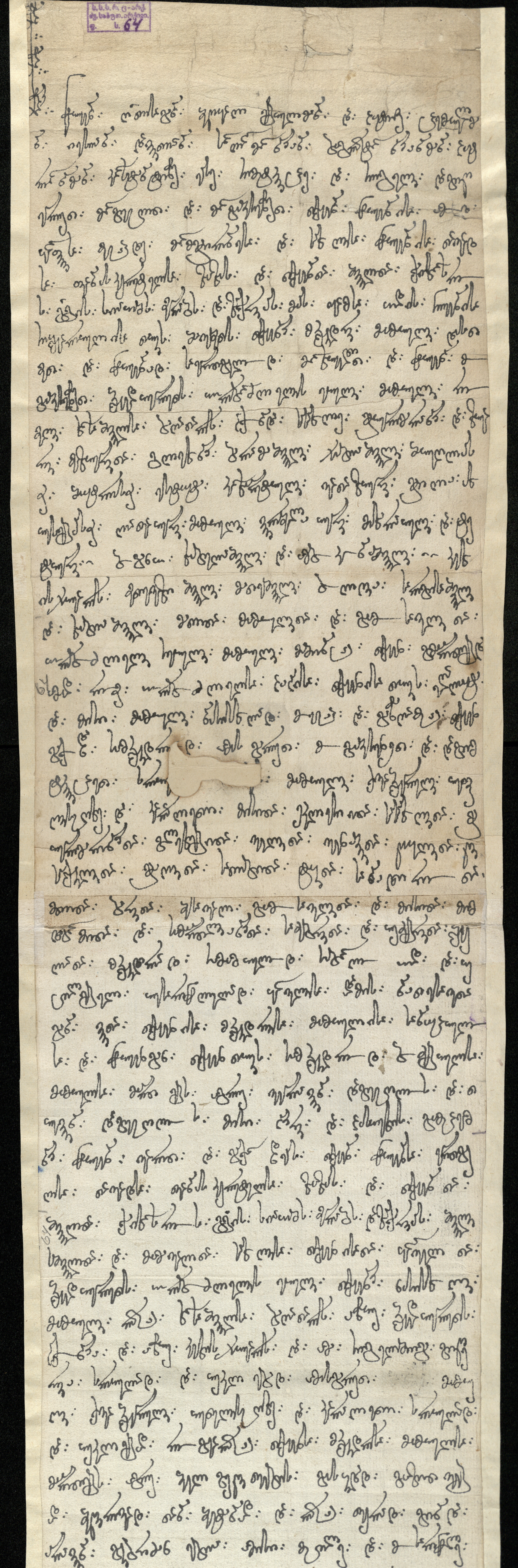 ჭვირნიშნიანი ქაღალდი თეთრი, ლაქებიანი, დაწერილი შავი მელნით.