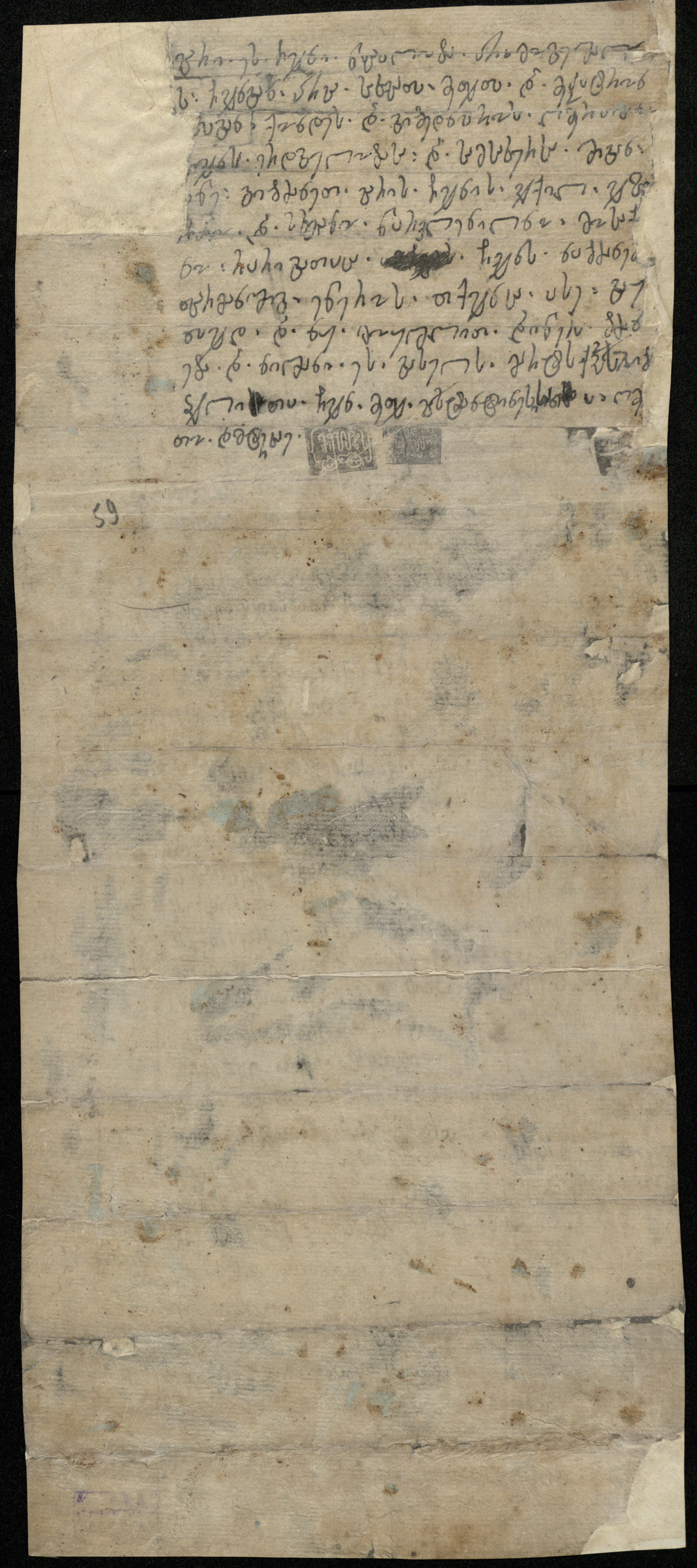 ქაღალდი მოთეთრო მუქი ლაქებით, დაწერილი შავი მელნით.
