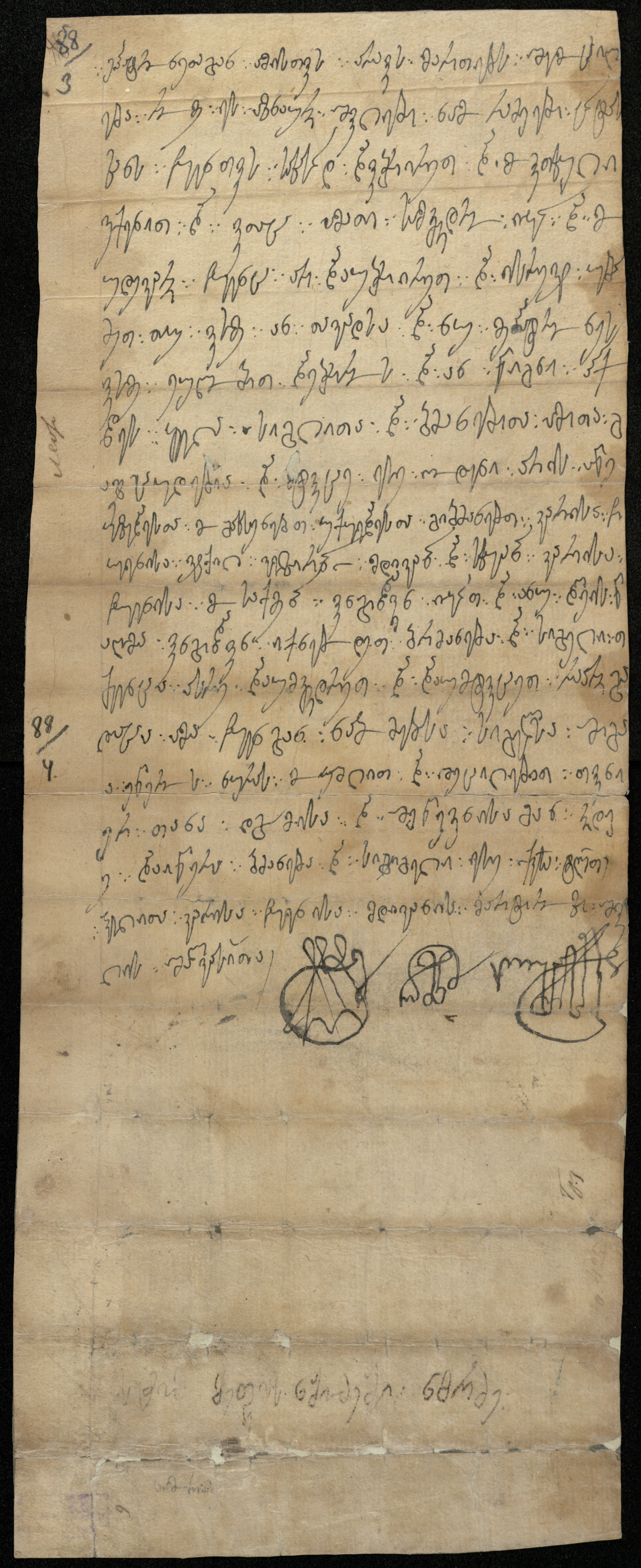 ქაღალდი ღია ყავისფერი, დაწერილი შავი მელნით.