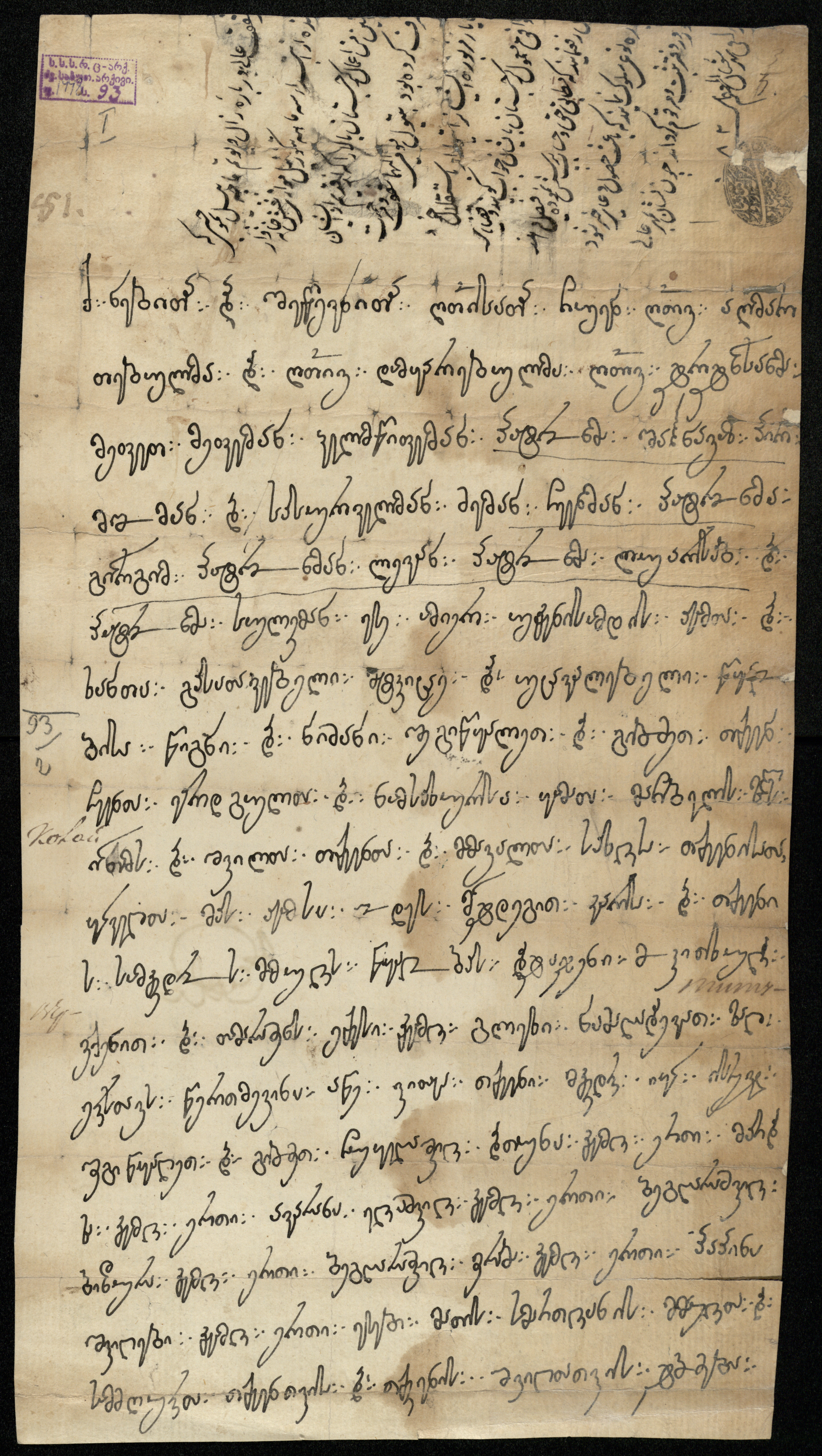 2. ახლავს შაჰნავაზის ხელრთვა და ორი აღმოსავლური ბეჭედი.