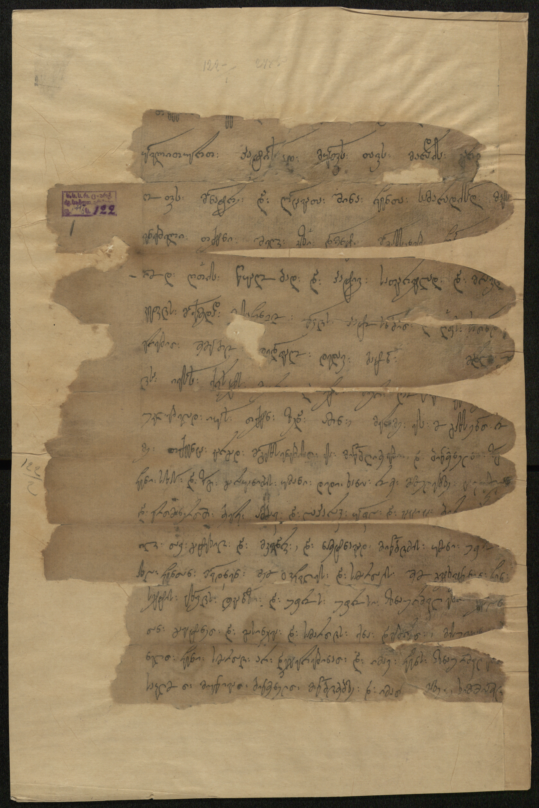 ქაღალდი, დაწერილი შავი მელნით.