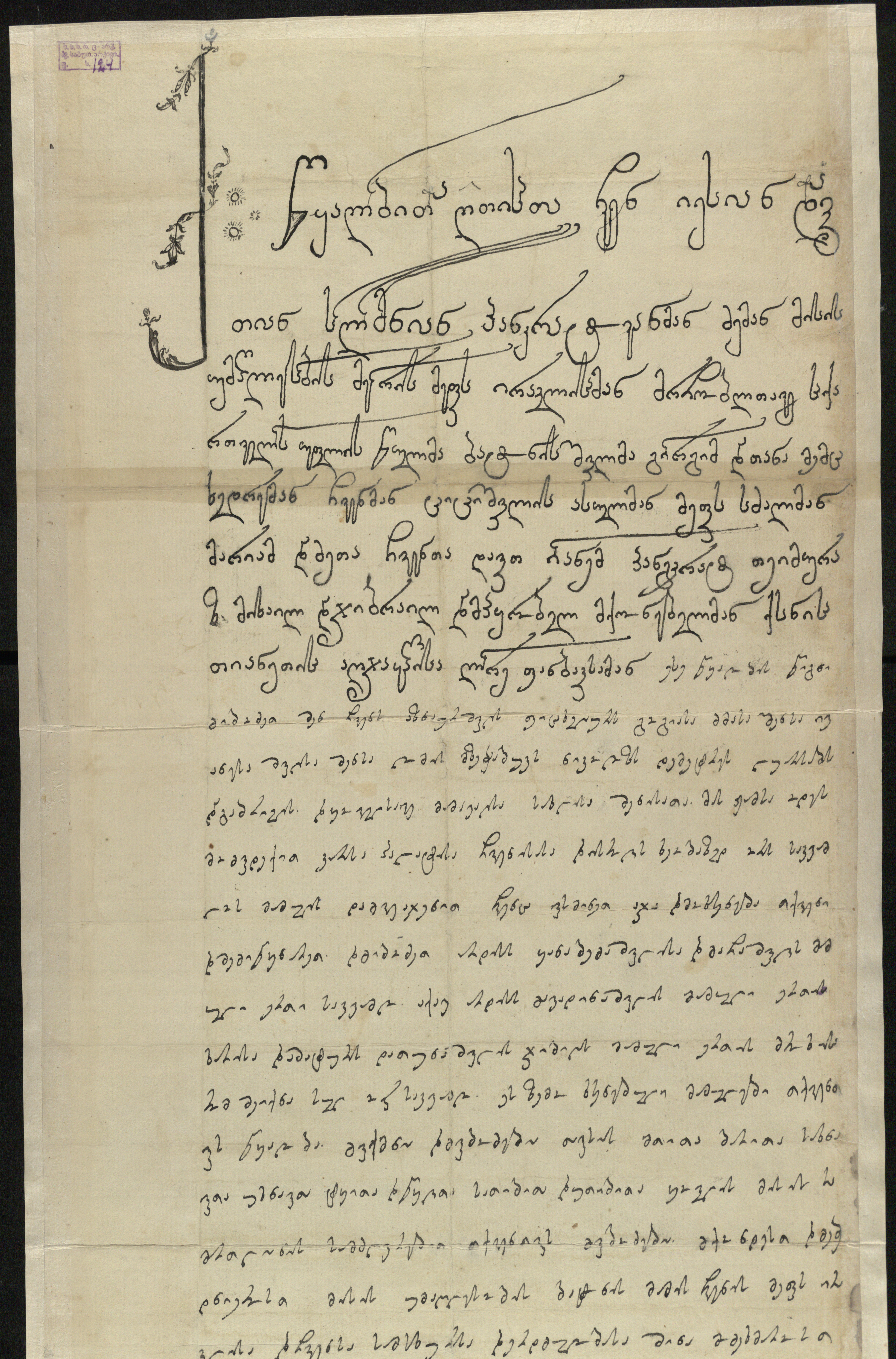 1. ახლავს ქანწილი მოხატული ყვავილოვანი ორნამენტით, შესრულებული შავი მელნით.
