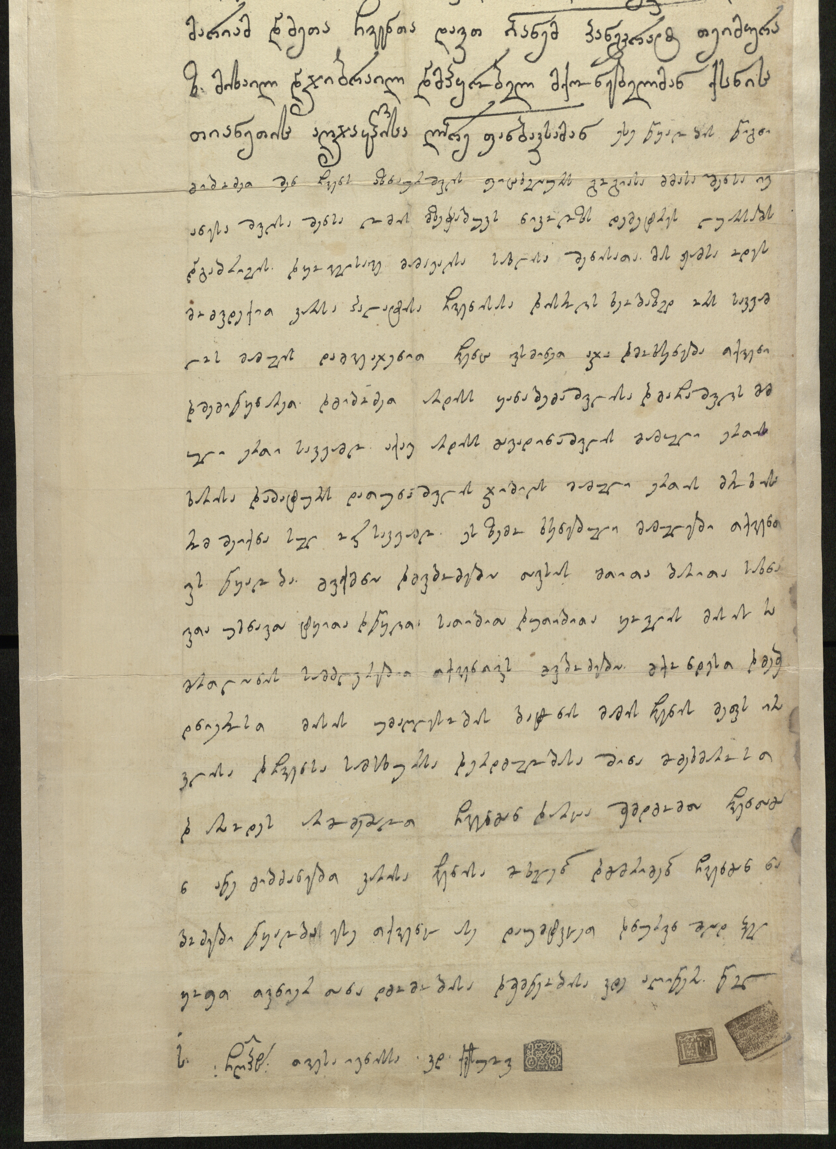 ქაღალდი, დაწერილი შავი მელნით.