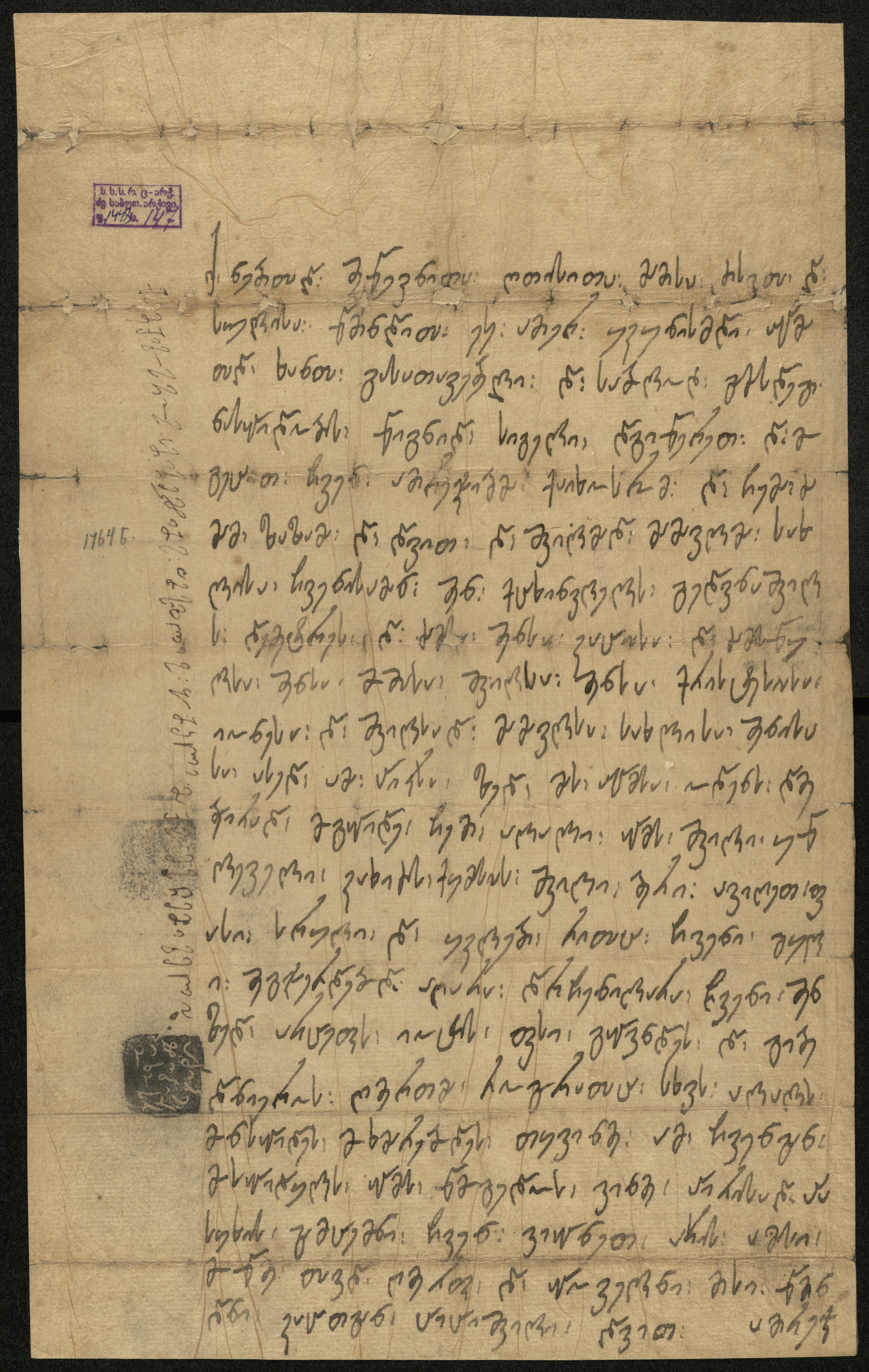 ქაღალდი, დაწერილი ყავისფერი მელნით.