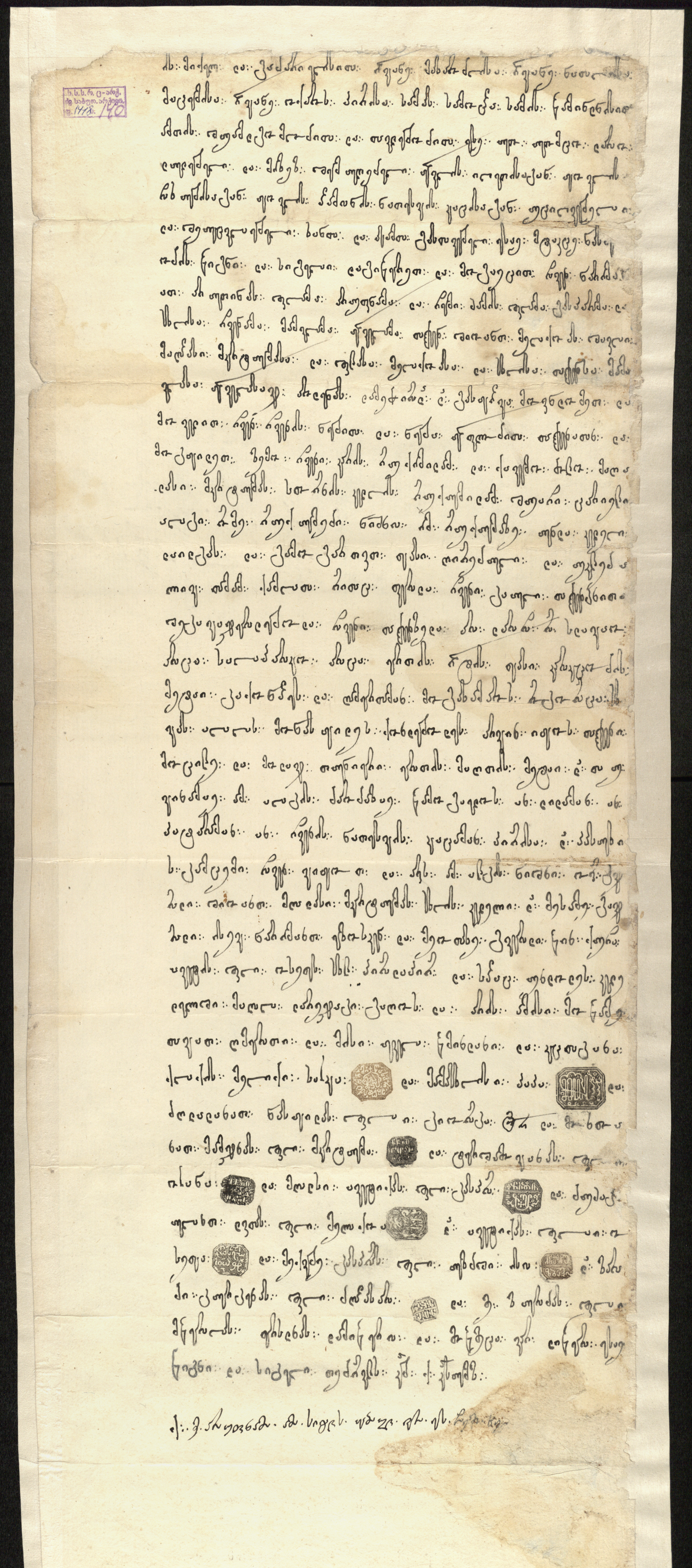 ქაღალდი, დაწერილი ყავისფერი მელნით.