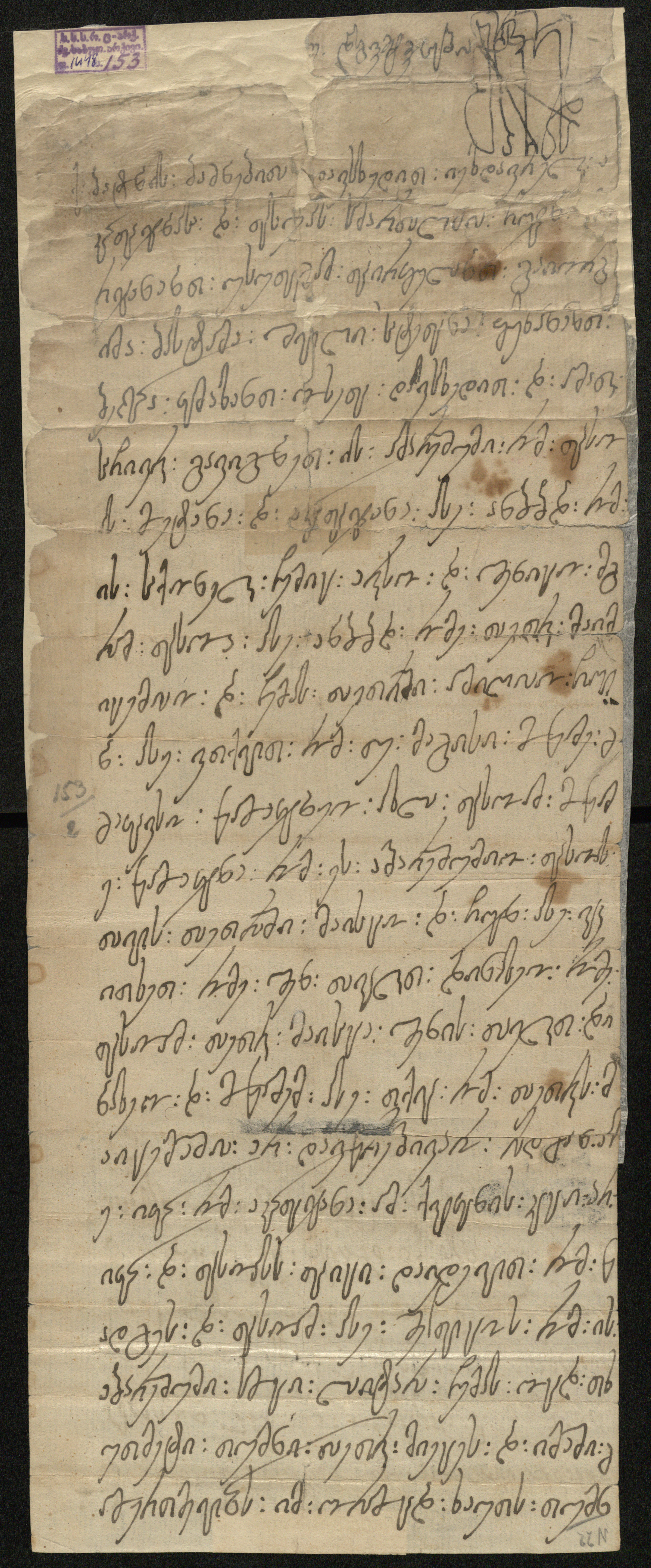 ქაღალდი, დაწერილი ყავისფერი მელნით.