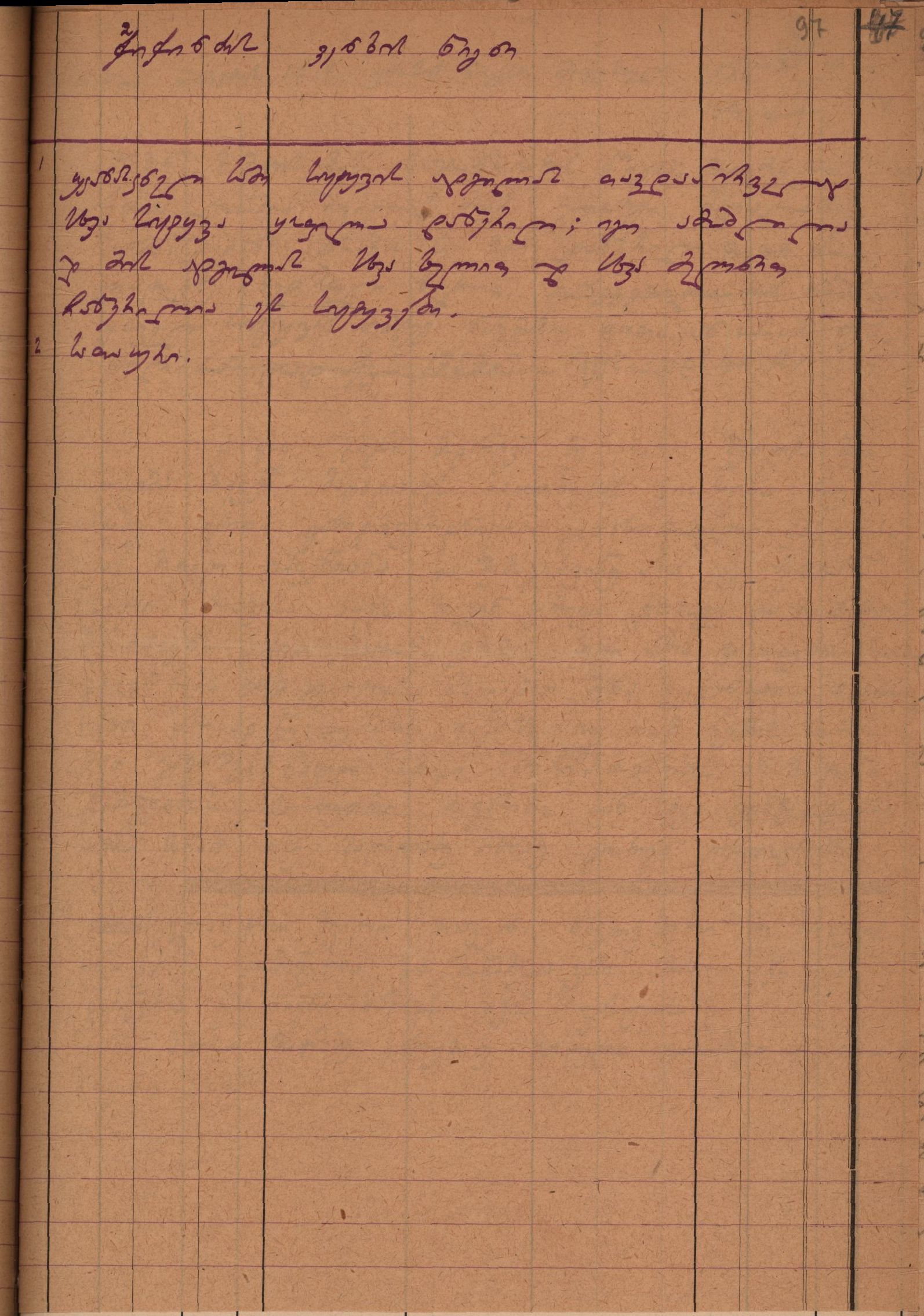 2. დედანი აღწერილი გიორგი ბოჭორიძის მიერ: ..დედანი, ზომა 33,7X15,6, დაწერილი თეთრ ქაღალდზე მხედრული ხელით. განკვეთილობის ნიშნად ყოველი სიტყვის შემდეგ ნახმარია ორ-ორი წერტილი".