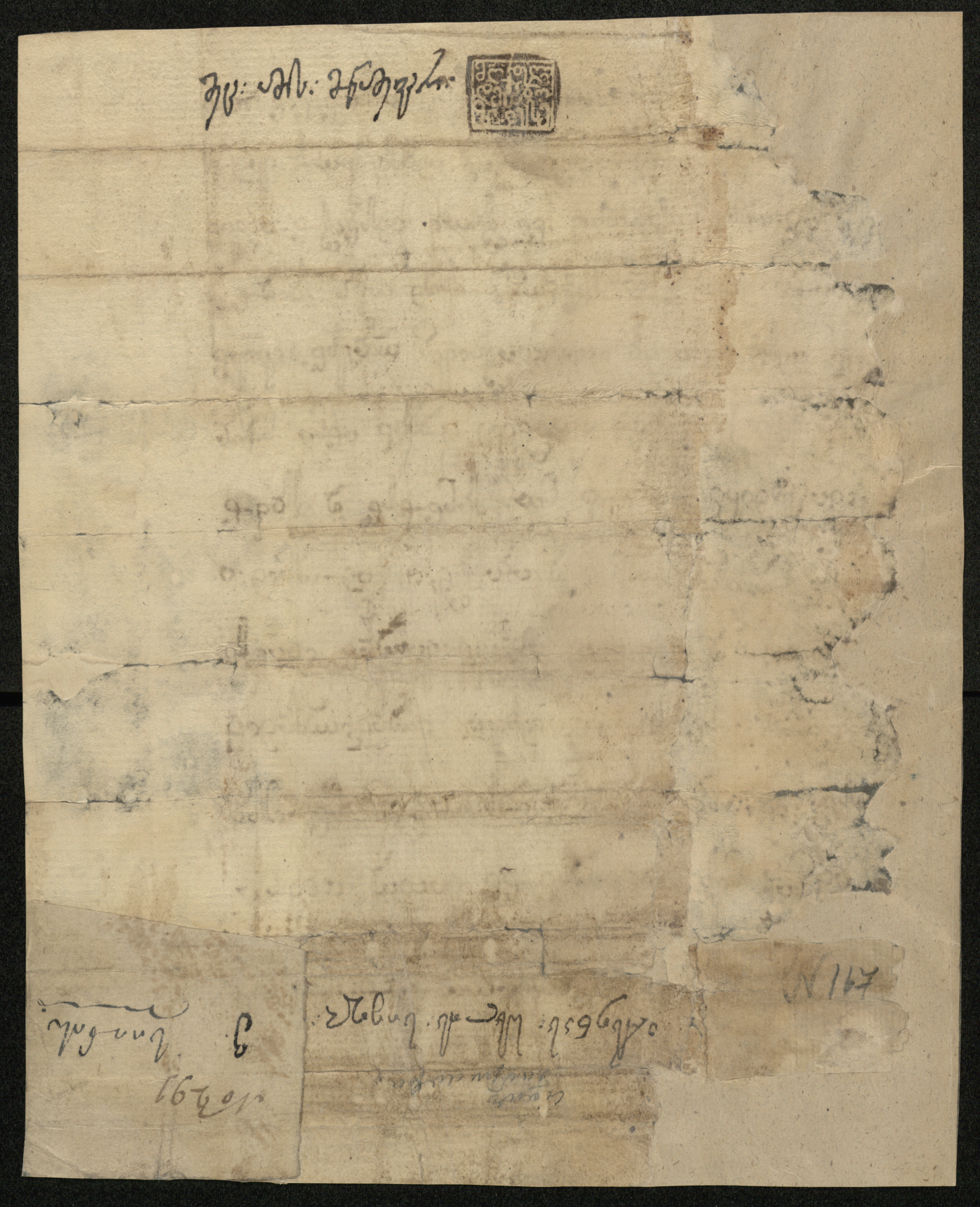 ჭვირნიშიანი ქაღალდი, დაწერილი შავი მელნით.
