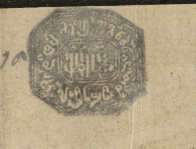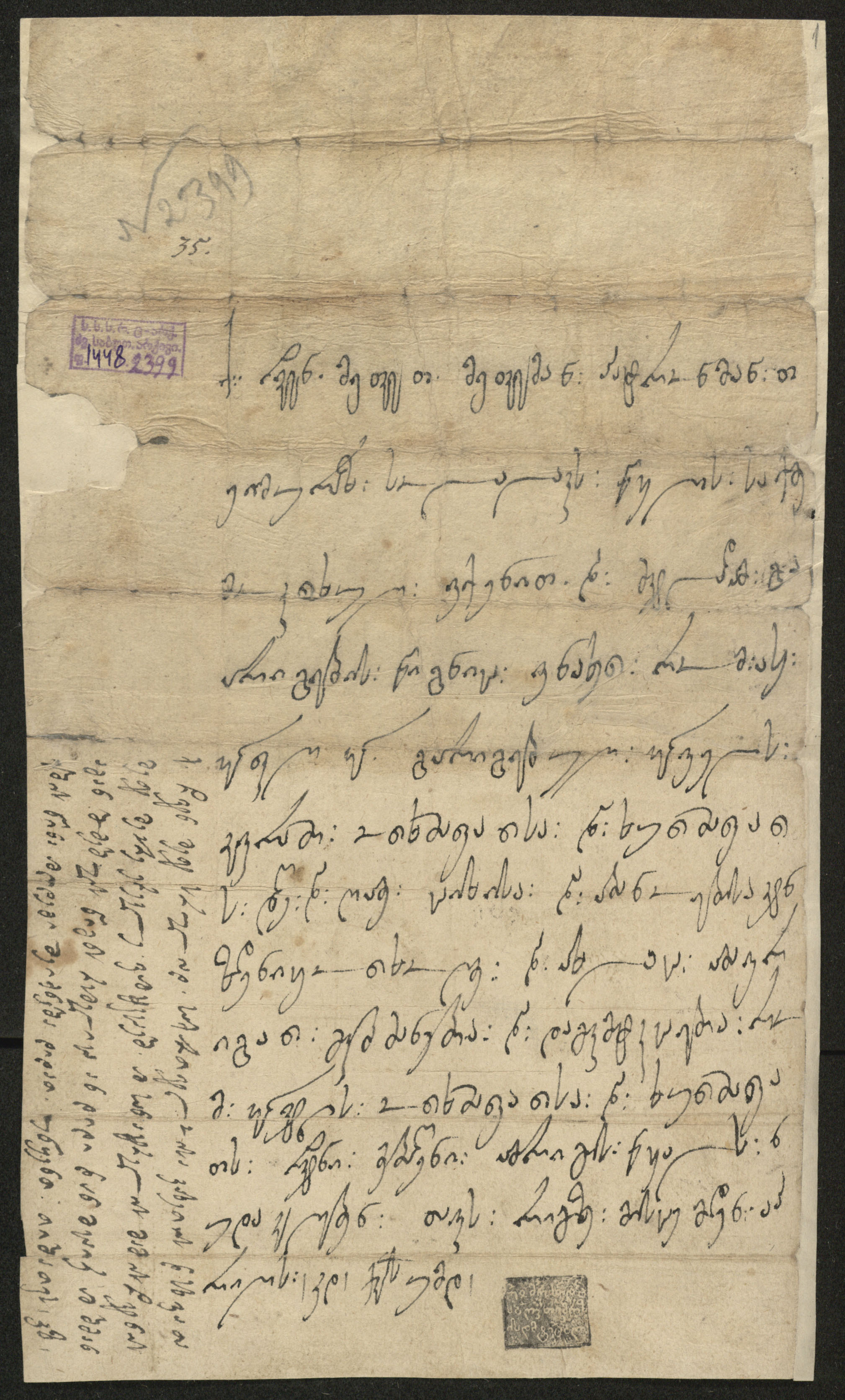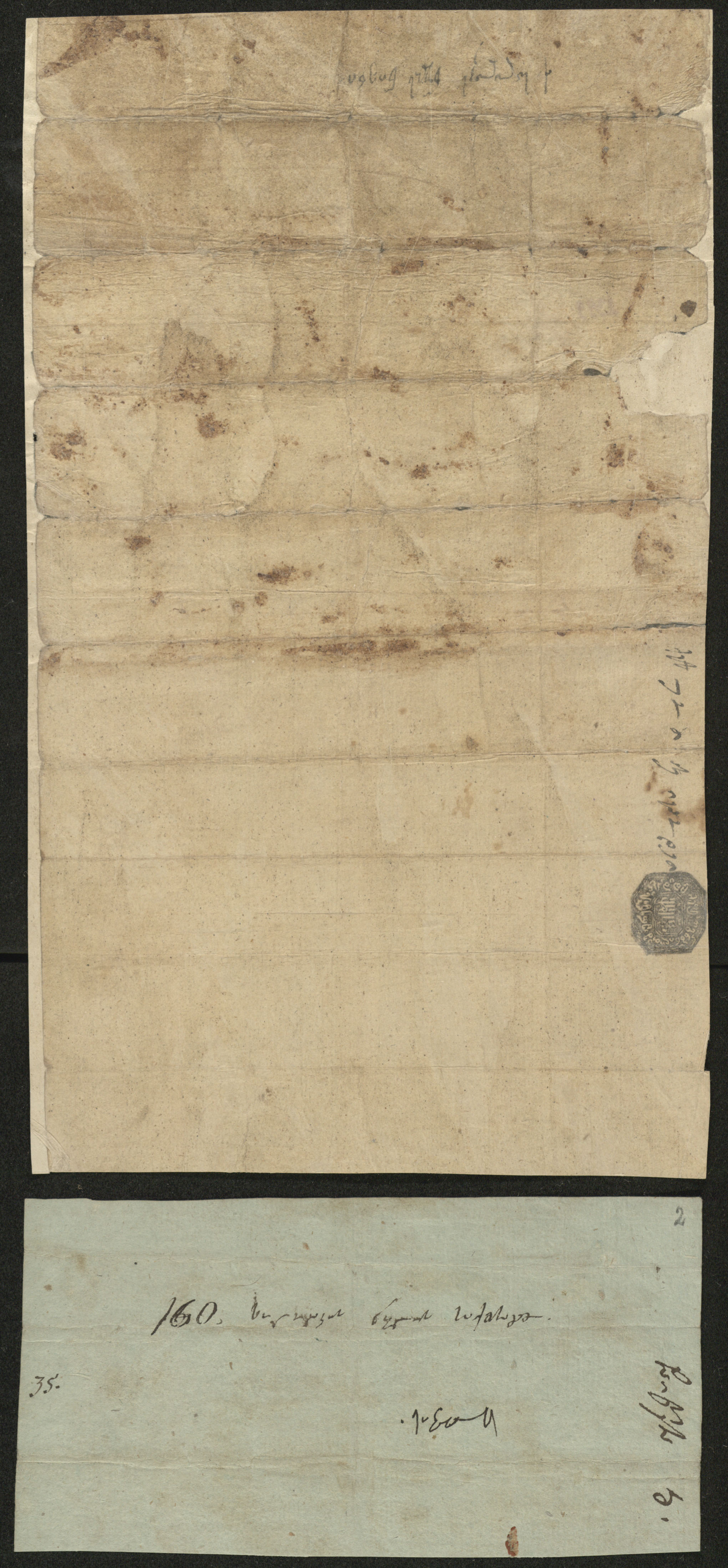 ქაღალდი ღია ყავისფერი, დაწერილი შავი მელნით, მეორე გვერდი ცისფერი