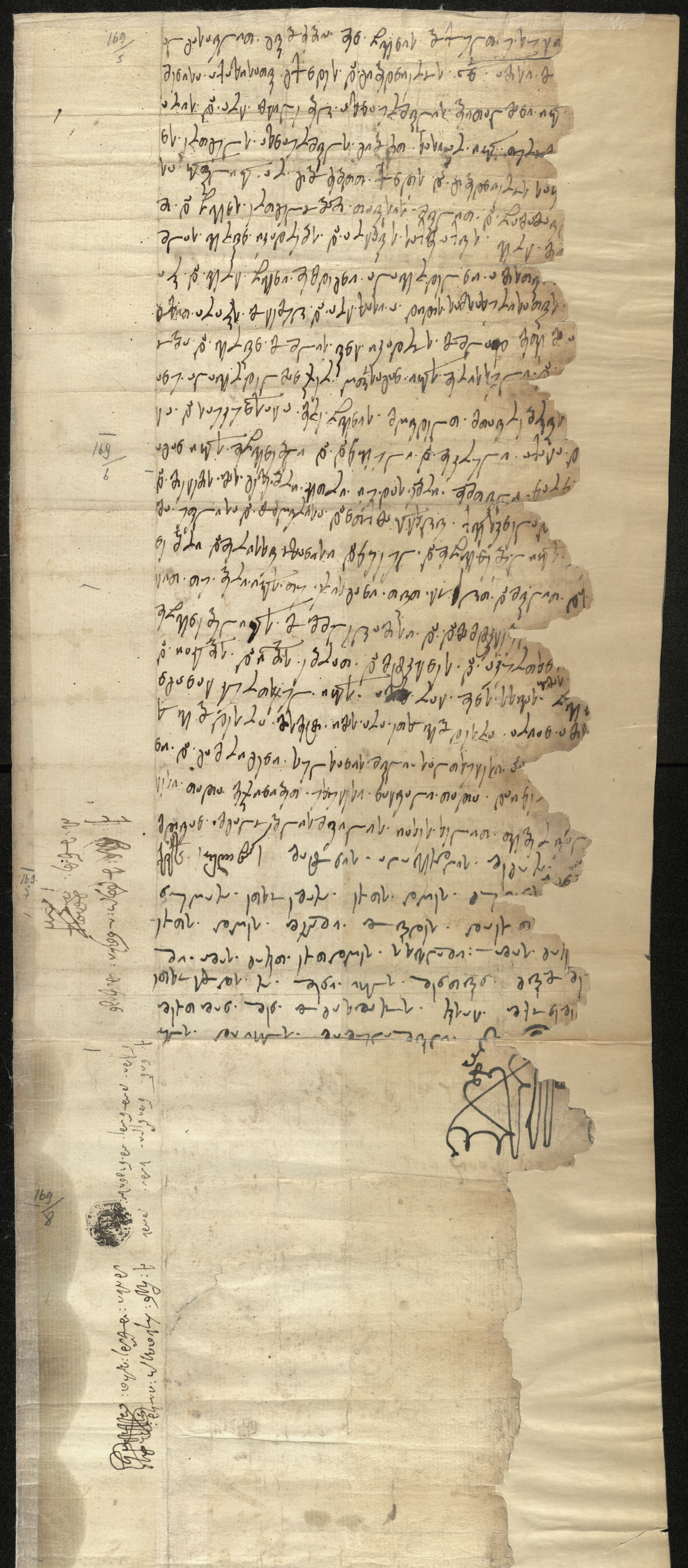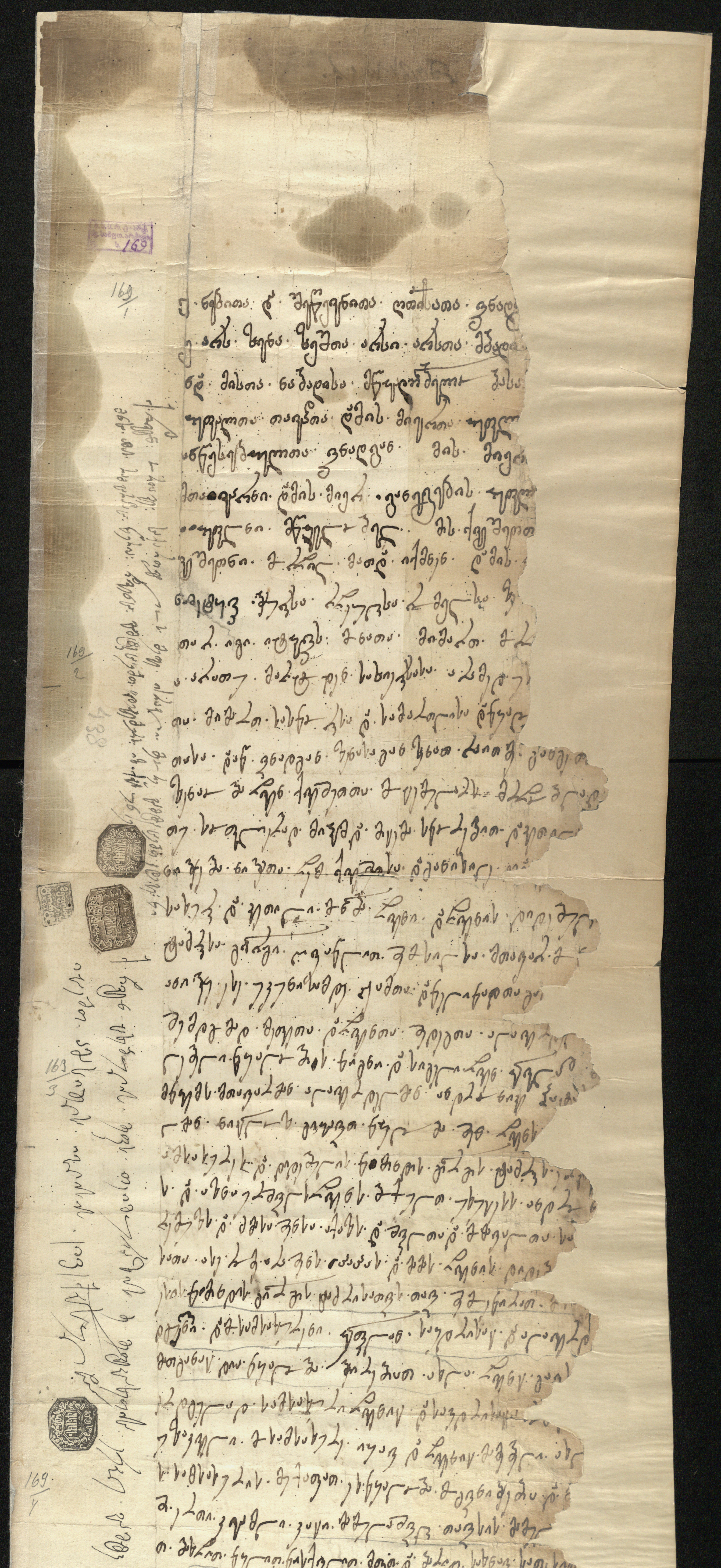 ქაღალდი, დაწერილი ყავისფერი მელნით.