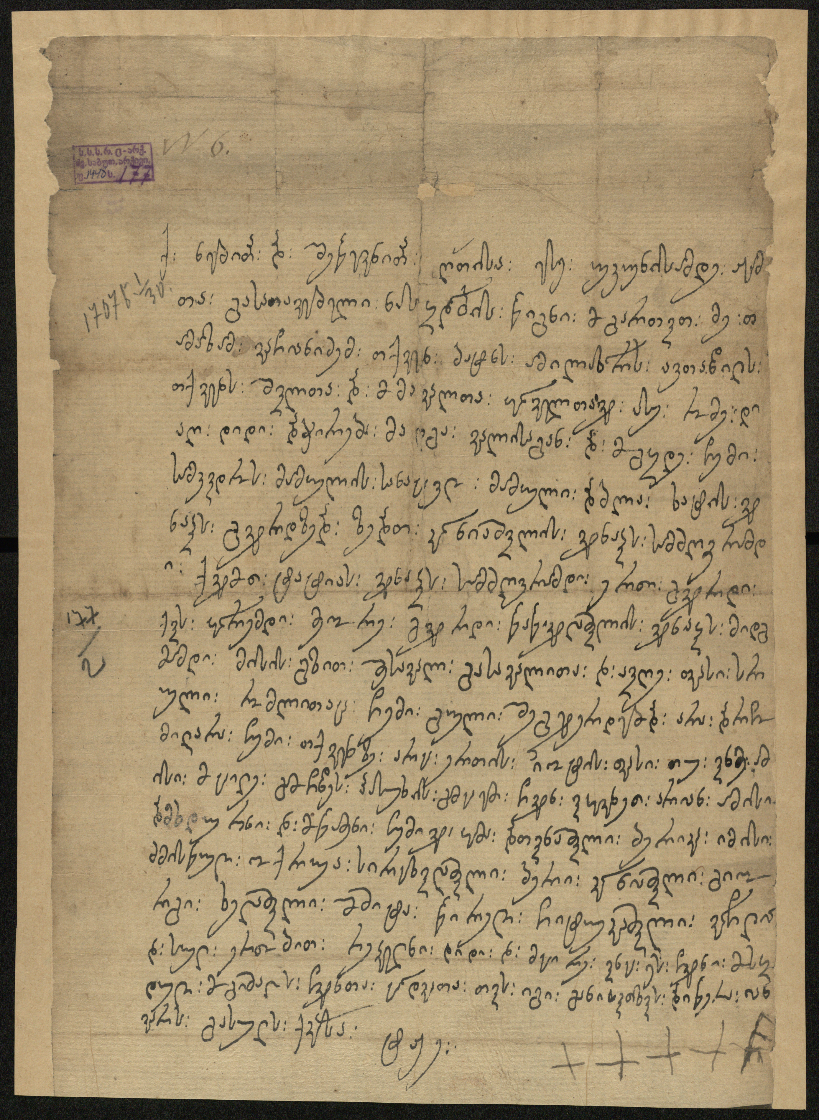 ჭვირნიშნიანი ქაღალდი, დაწერილი შავი მელნით.