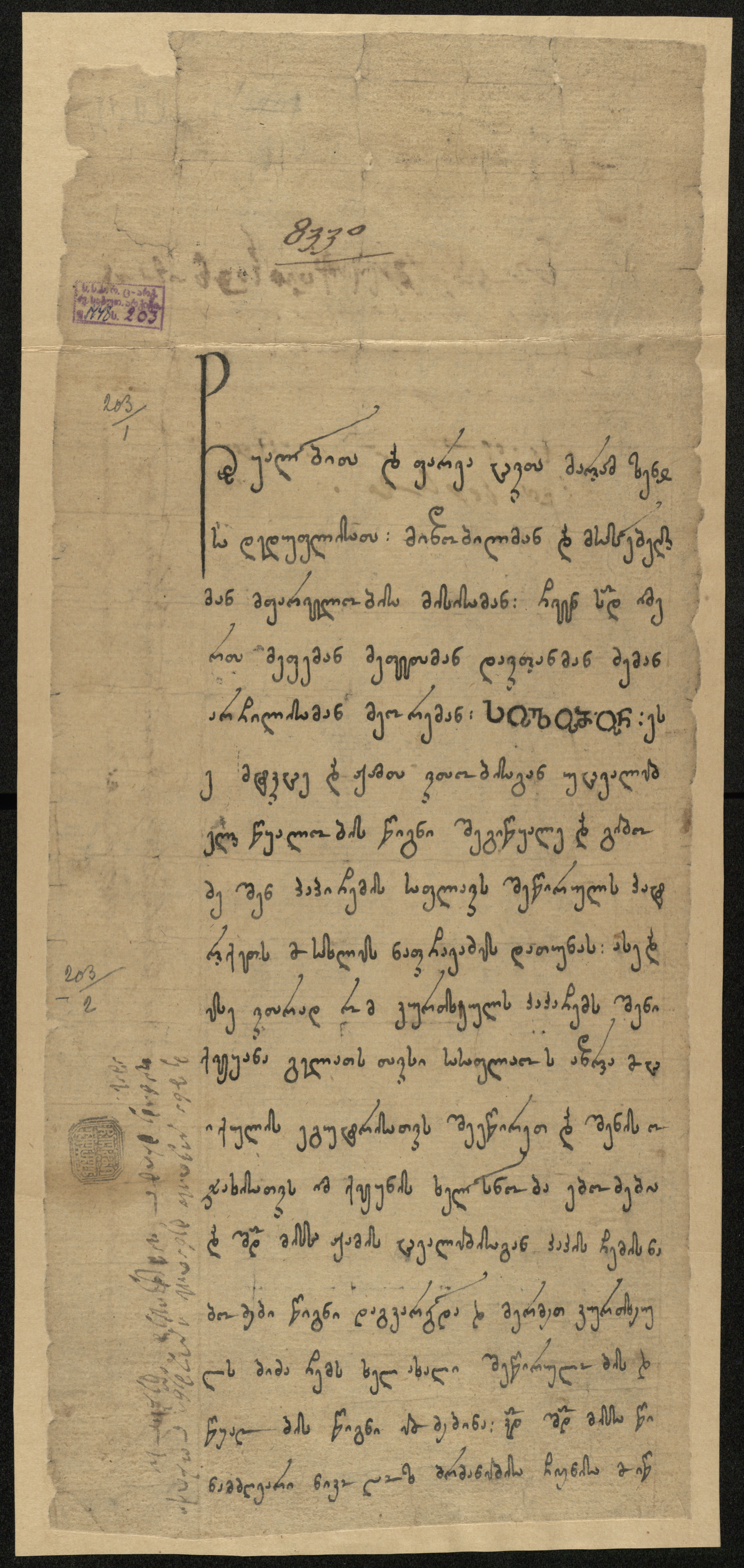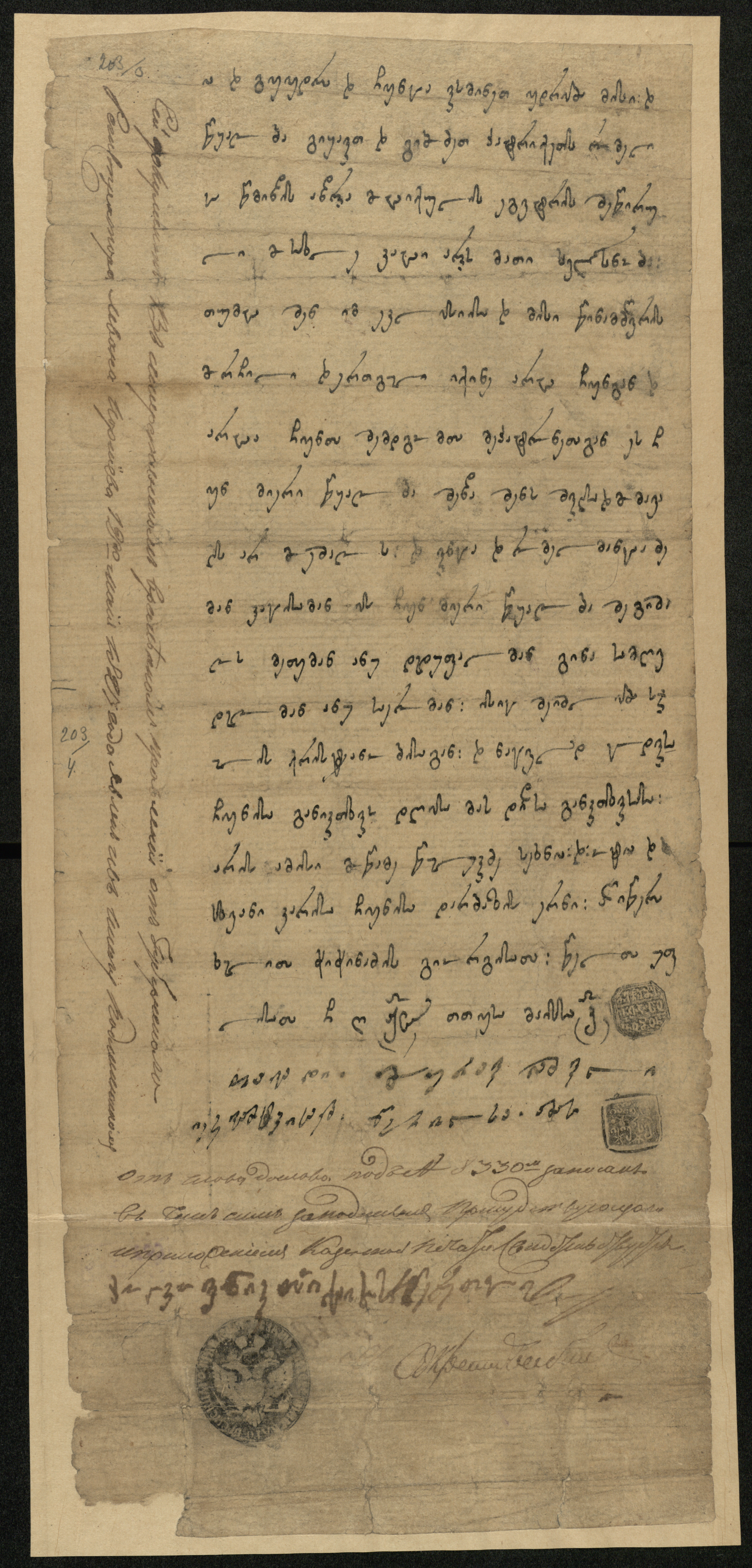 ქაღალდი, დაწერილი შავი მელნით.
