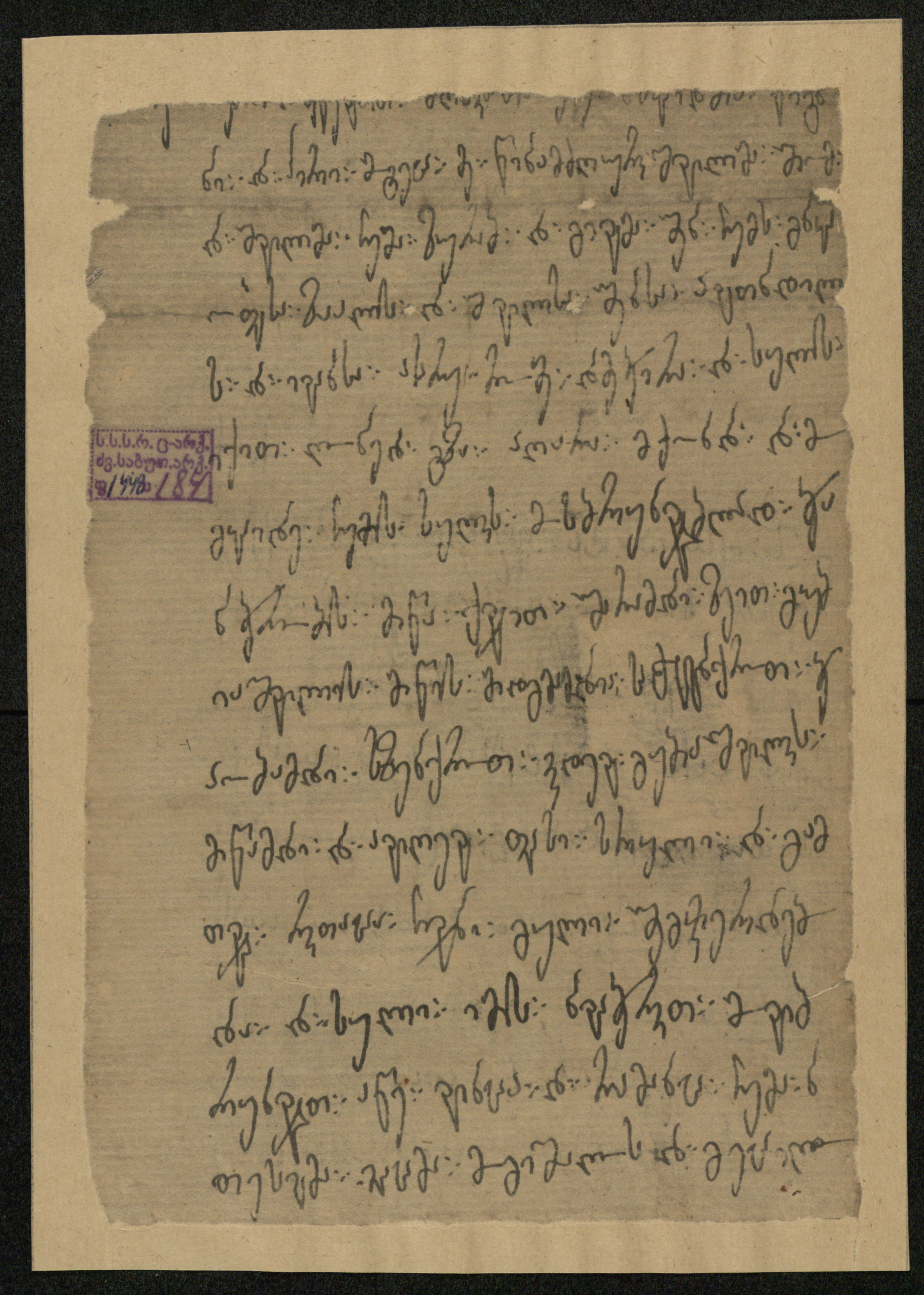 ქაღალდი, დაწერილი შავი მელნით.