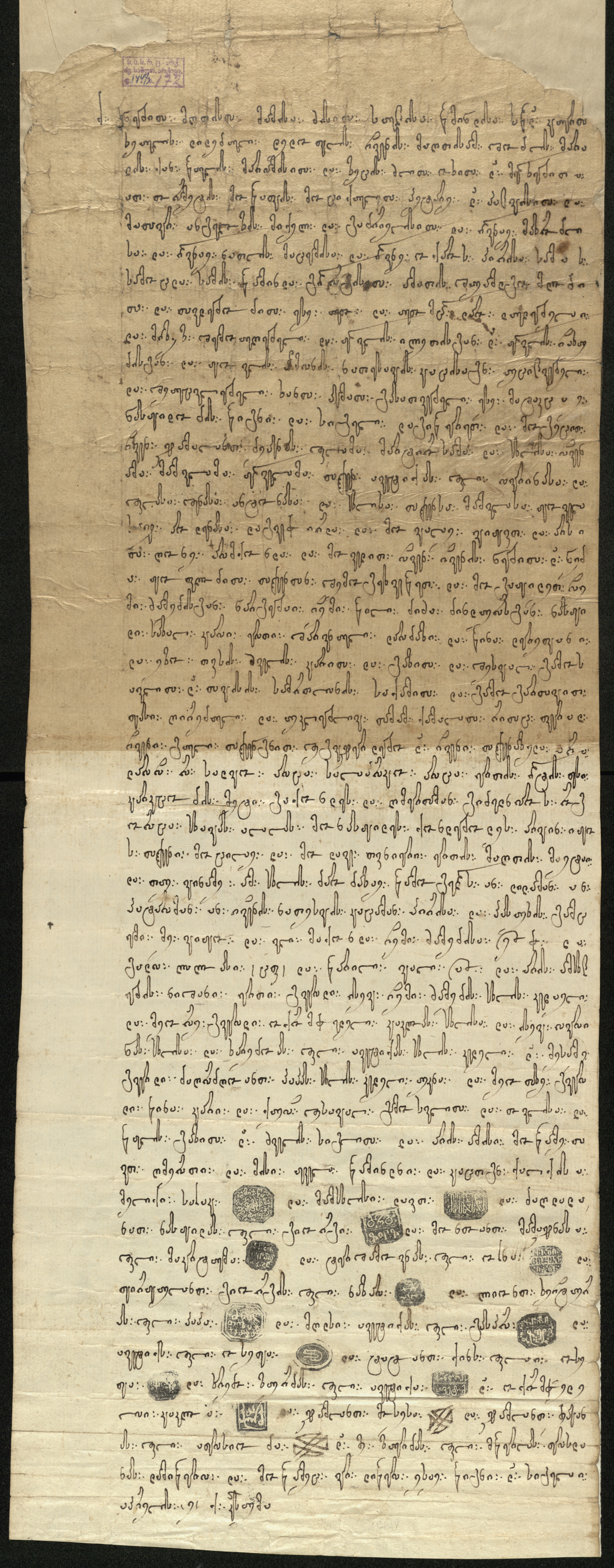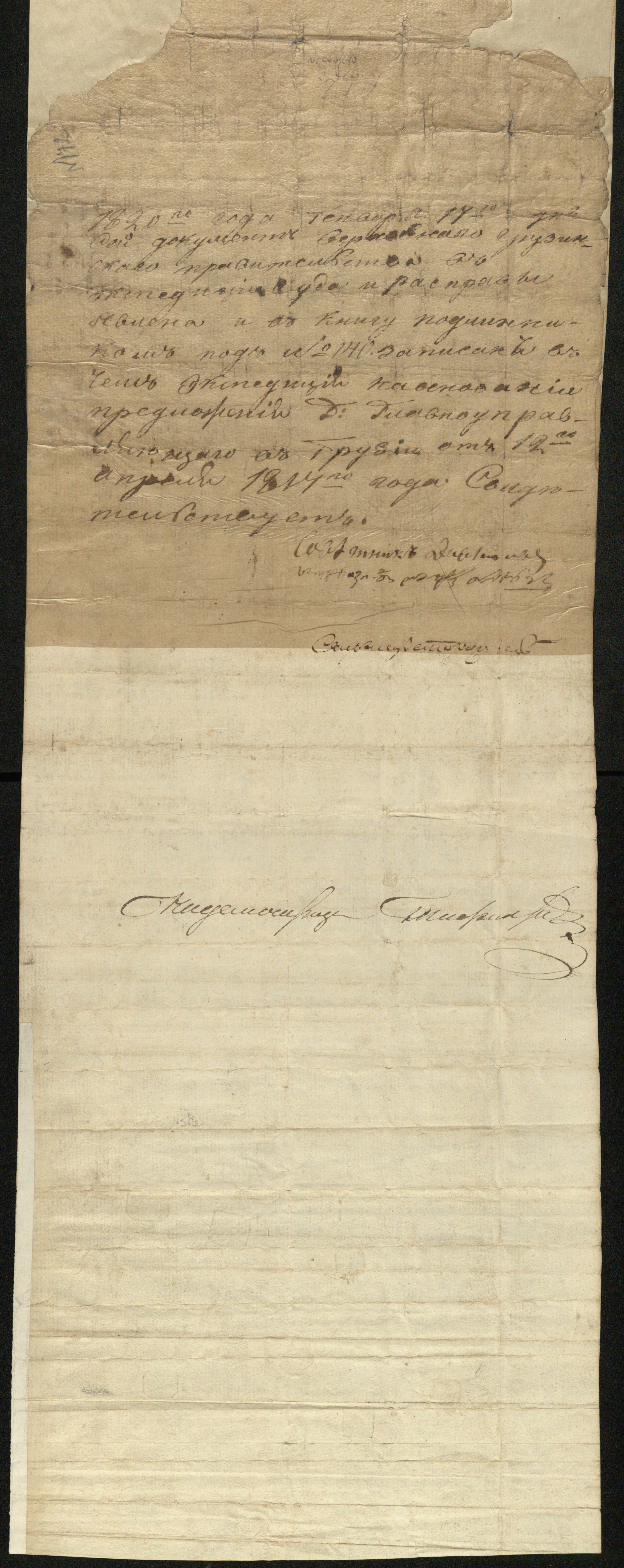 ქაღალდი დაწერილი ყავისფერი მელნით.