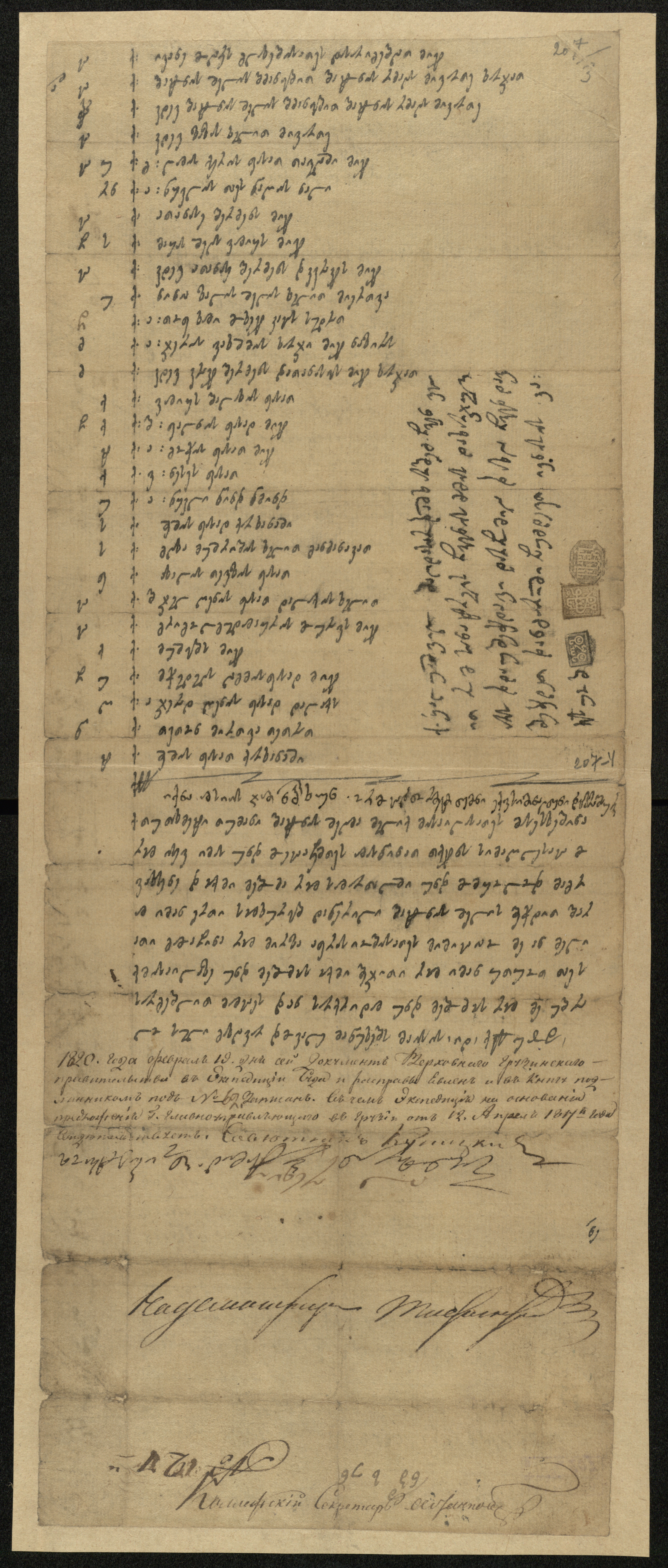 4. რეგისტრირებულია რუსეთის ადმინისტრაციის მიერ 1820 წ. 19 თებერვალს, სოვეტნიკი დიმიტრი თარხანოვი.