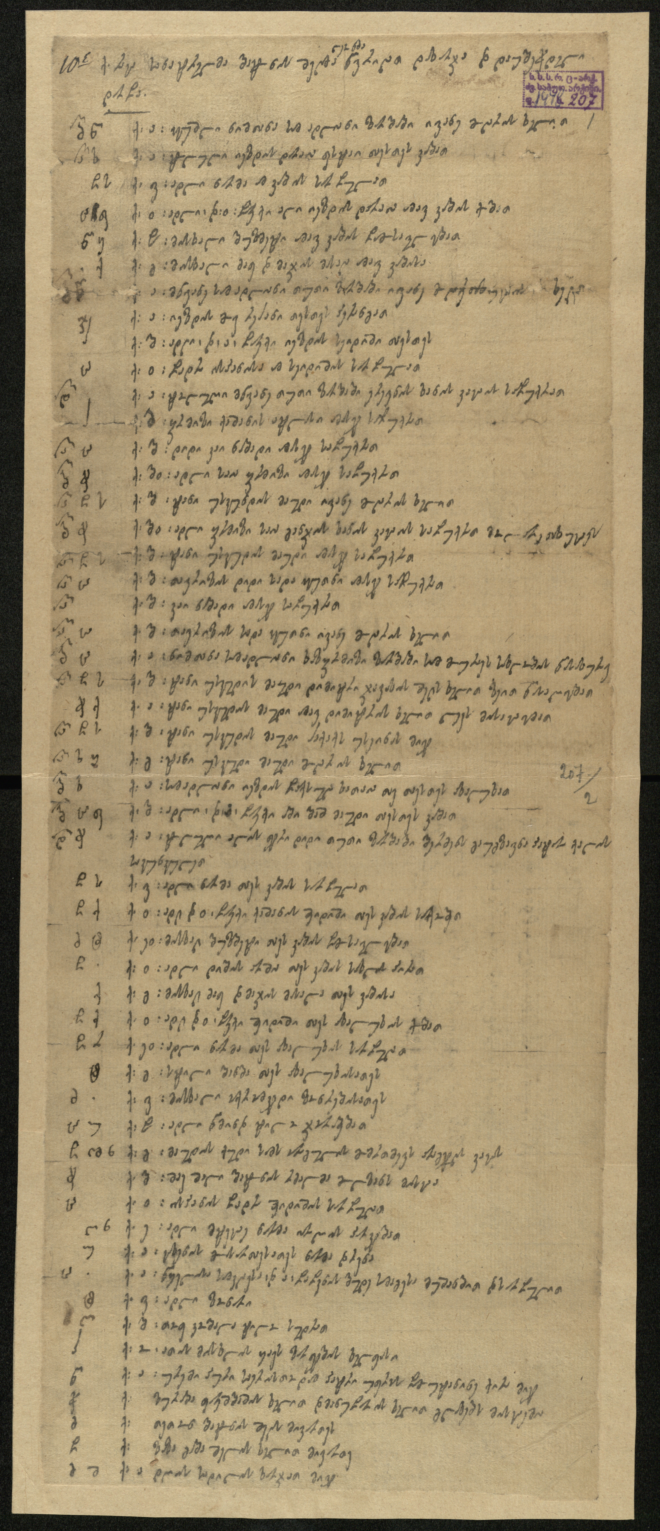 ქაღალდი, დაწერილი შავი მელნით.