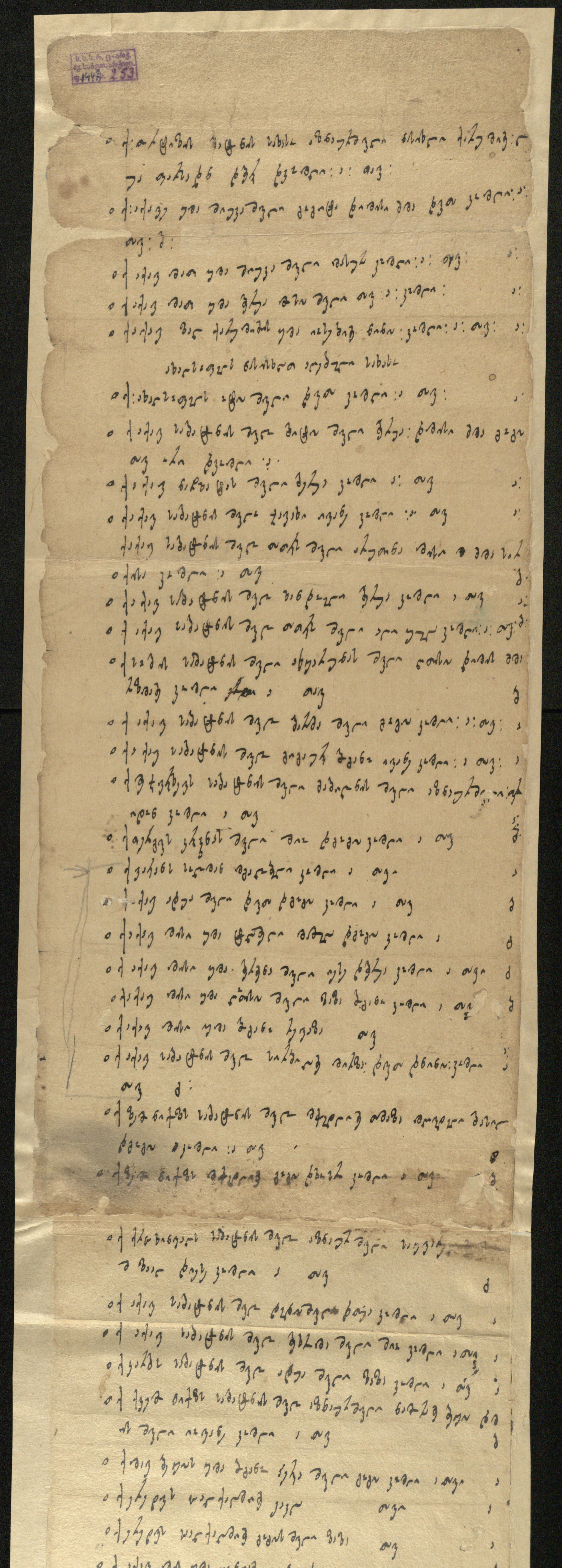ქაღალდი, დაწერილი ყავისფერი მელნით.